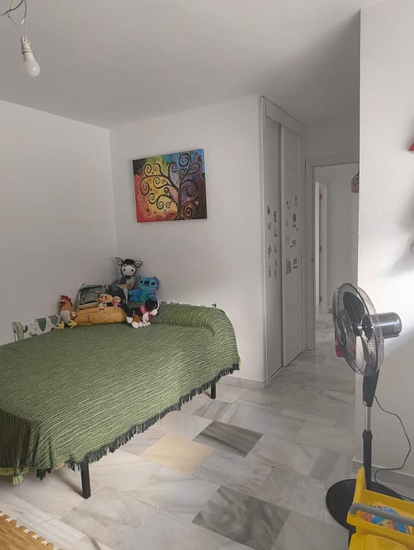 The apartment consists of three spacious bedrooms, perfect for accommodating a family or guests, as well as two functional bathrooms, one of which is en-suite to the master bedroom. The main living area allows for a combined living and dining space with direct access to a 30 m² terrace, providing a pleasant outdoor extension where you can enjoy the mild Costa del Sol climate.