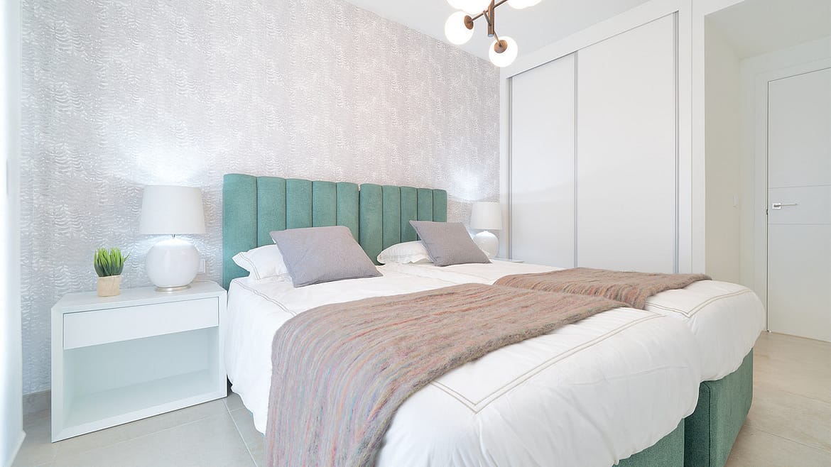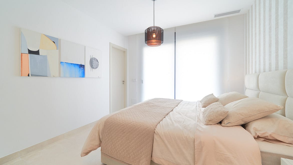The bedrooms offer excellent storage capacity thanks to lacquered built-in wardrobes with fully finished interiors.