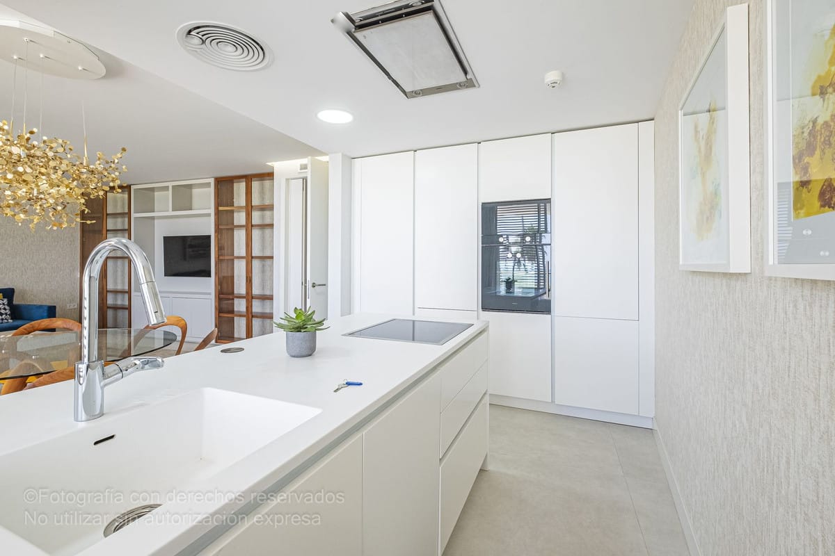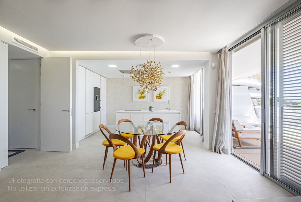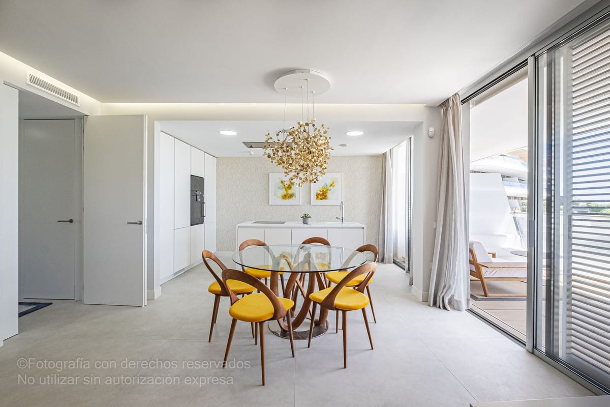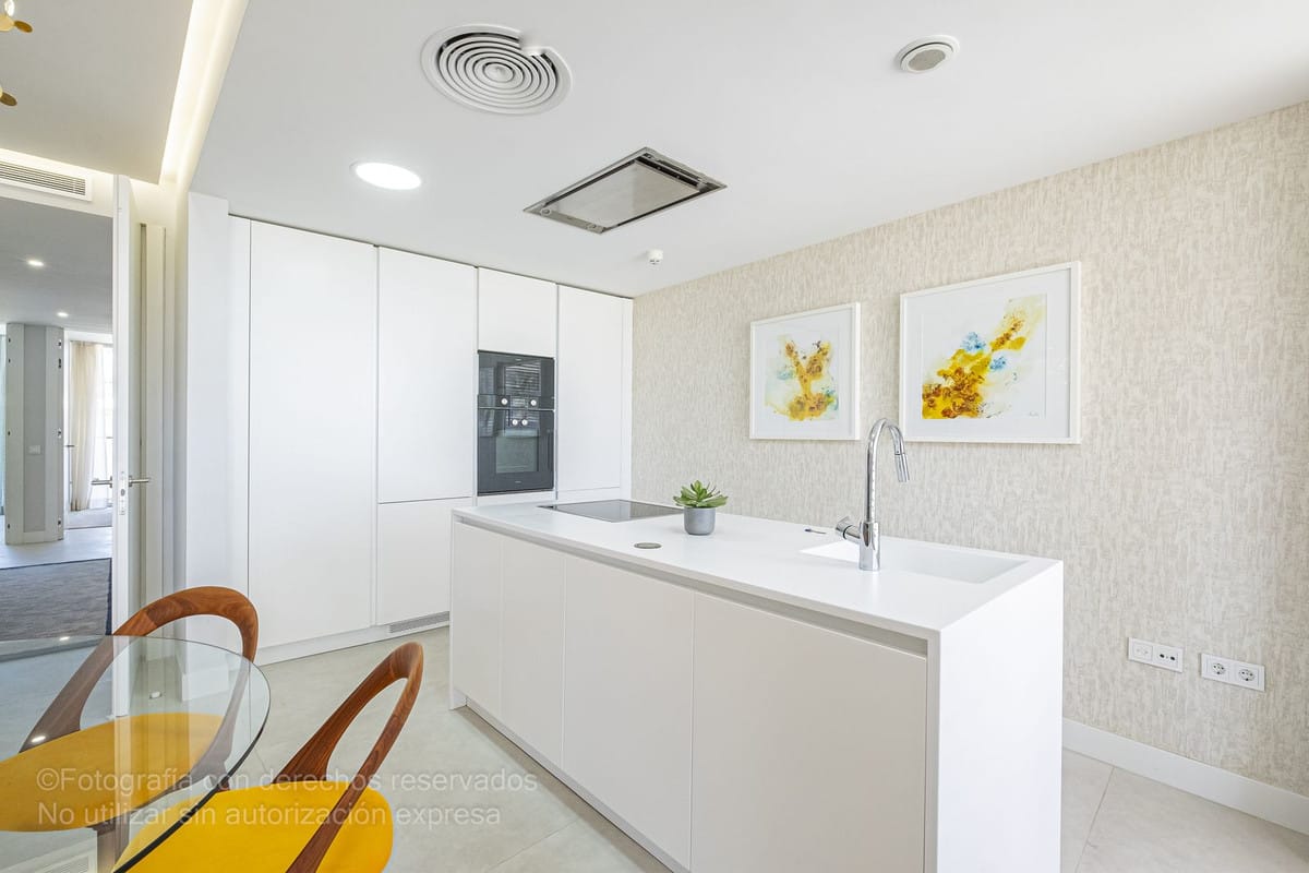 This sophisticated 3 bedroom apartment has a main terrace facing south. It has 2 bathrooms, one with shower and one with bathtub, plus a guest toilet. The apartment includes underfloor heating, air conditioning hot/cold, a domotic control system and is connected to a central alarm system.