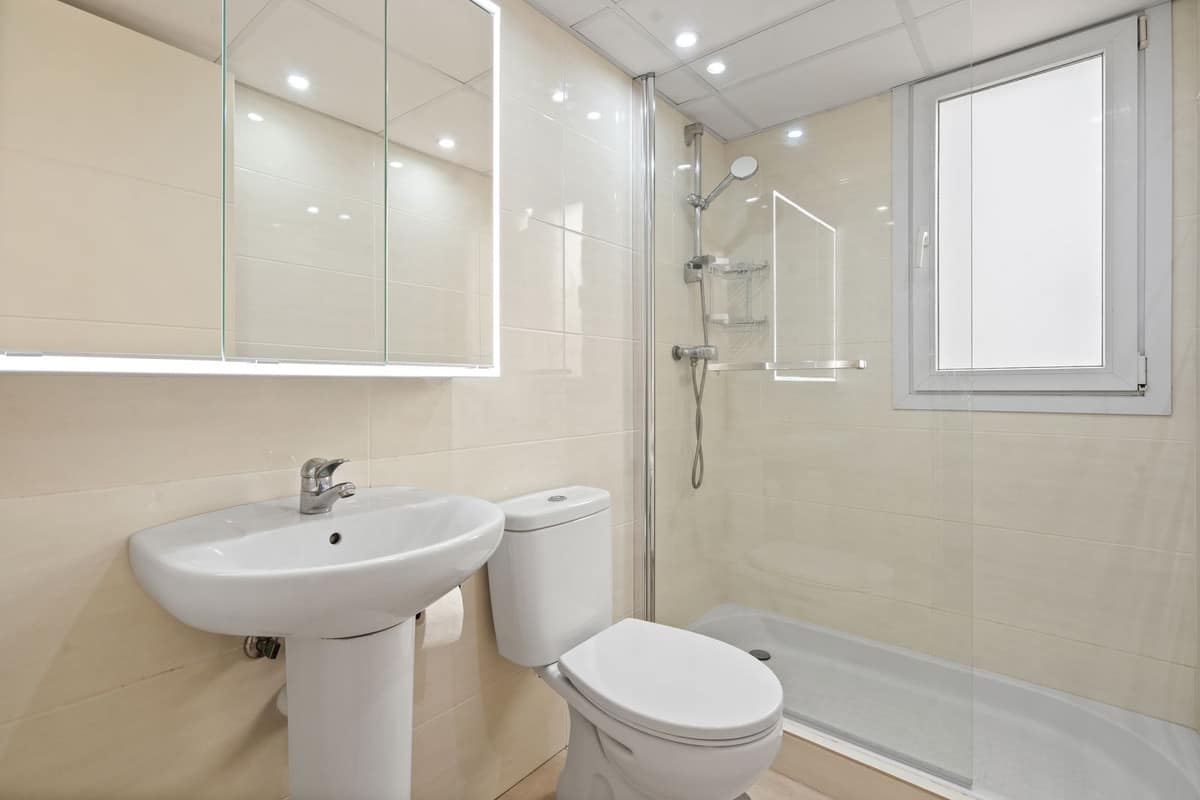Communal pool with children’s area, air conditioning (hot & cold), covered terrace, lift, fitted wardrobes, private terrace, high-speed WiFi, marble floors, double glazing, and entry phone security.