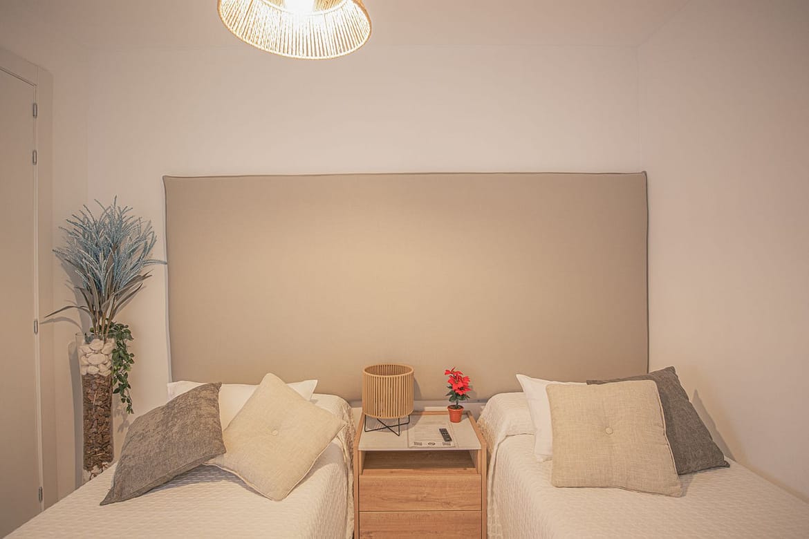 Renovated apartments with 3 bedrooms, living room, kitchen, two terraces, with all amenities in Las Salinas. The apartments are located 200 meters from the beach, 8 km from Estepona, 18 km from Marbella and 34 km from Ronda. It offers 2 shared outdoor pools, 1 indoor pool, sauna, gym and free Wi-Fi. The master bedroom has a private bathroom, King-size bed, large TV, large closet and private access to the terrace. The second bedroom has two separate beds , bedside table, closet, large TV and access to a small terrace. The third bedroom has two separate beds, bedside table, closet, large TV and access to a small terrace. The second bathroom with shower and toilet has a separate entrance from the shared hallway. The kitchen is equipped with a built-in dishwasher, refrigerator, hob, oven, microwave, extractor hood, kettle, toaster and coffee maker. The living room has a large flat screen TV, a large dining table for 6 people, a large corner sofa and access to a large sun terrace. There is also a laundry room with washer and dryer, ironing board and iron.The apartment has dedicated parking space in the undergounf parking and a storage room. Apartment will be sold fully furnished.