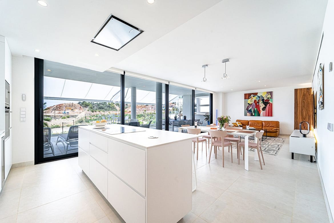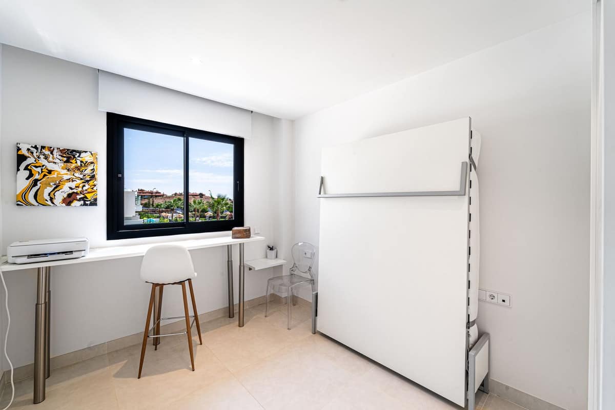 Luxury west facing apartment, in the exclusive urbanization of Higuerón West, with 3 bedrooms, 2 bathrooms, spacious living-dining room, open plan kitchen fully furnished and equipped with electricial appliances from Bosch including american fridge/freezer and wine cooler, laundry area with washing machine/dryer, large terrace of 54m2 with garden views. Master bedroom with walk-in closet, open plan bathroom and access to a small terrace of 5m2. Air conditioning hot and cold, video intercom, domotic system, built-in wardrobes in all bedrooms and hall entrance, electric awnings on main terrace and electric curtains in living room, pre-installation alarm system, floor heating in both bathrooms. Includes two parking spaces and one storage room.