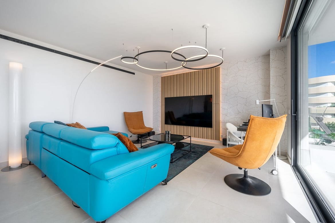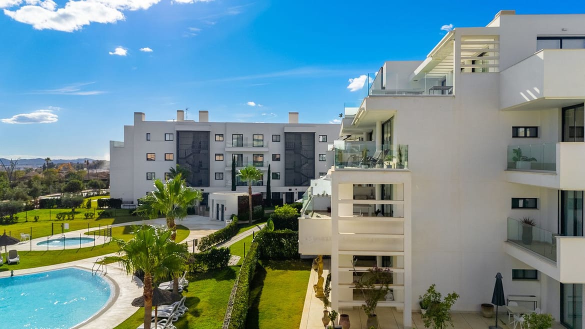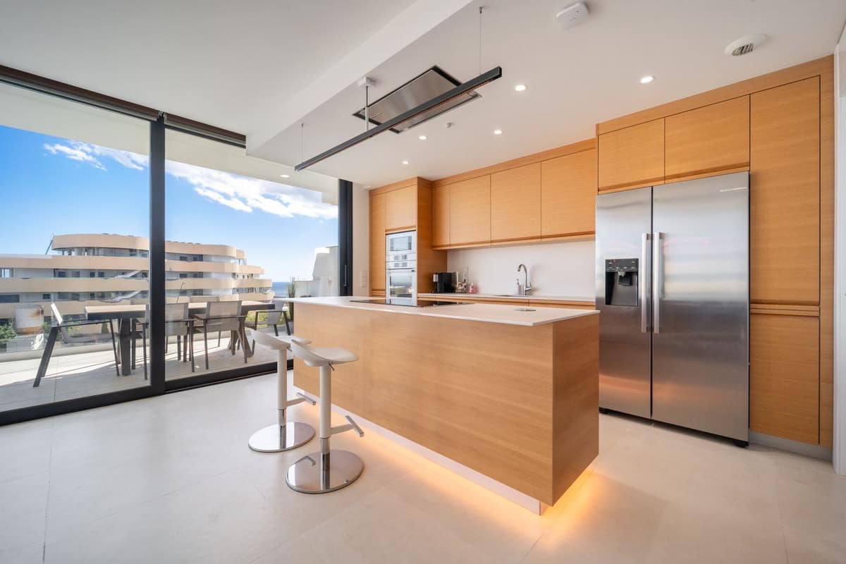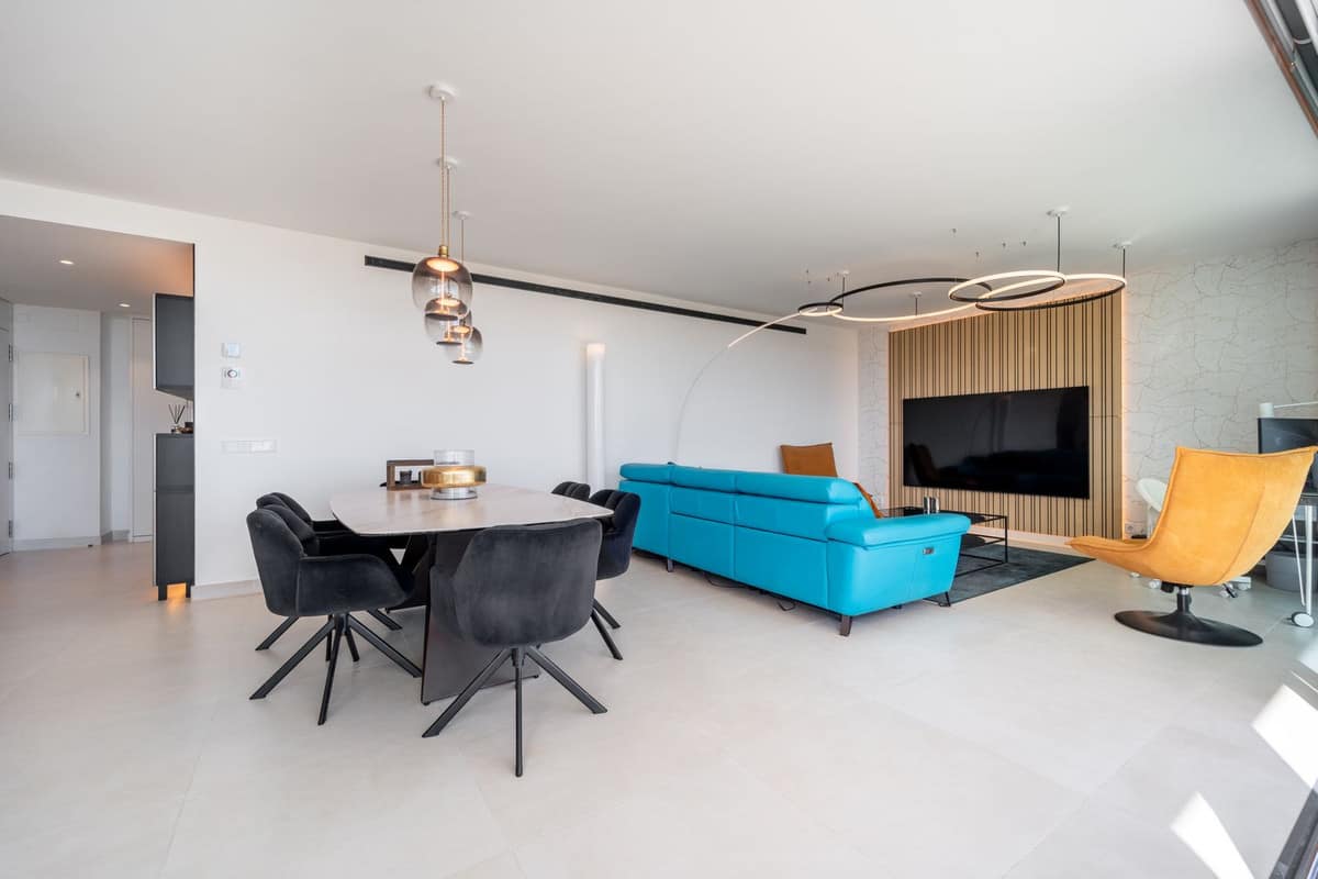 Luxury south facing apartment, in the exclusive urbanization of Higuerón West, with 3 bedrooms, 3 bathrooms of which 2 are ensuite, spacious living-dining room, open plan kitchen with large island, oversized cooktop, and high-end smart appliances, including an American fridge and wine-cooler, laundry area with washing machine/dryer, large terrace of 35m2 with beautiful sea and garden views. Master bedroom with walk-in closet, open plan ensuite bathroom with double shower and access to a terrace of 7m2. Air conditioning hot and cold, video intercom, domotic system, built-in wardrobes in all bedrooms, electric awnings on main terrace and motorized smart dual blinds (Screen & Blackout) in all bedrooms, High-quality LED lighting and smart ambient illumination, Smart alarm and video surveillance system controlled via mobile, Hydraulic underfloor heating throughout the apartment. Includes two parking spaces (with electric car charger) and one storage room.