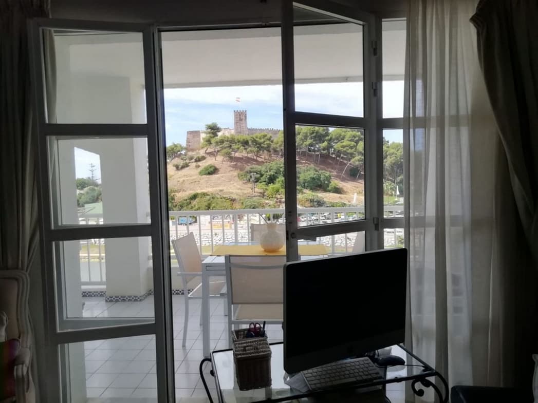 A prestigious apartment is now for sale on the fourth floor in one of Fuengirola's most sought-after beachfront locations. The property boasts unparalleled panoramic views of the sea, the Fuengirola River, and the iconic Sohail Castle, guaranteed to remain unobstructed by any future construction.