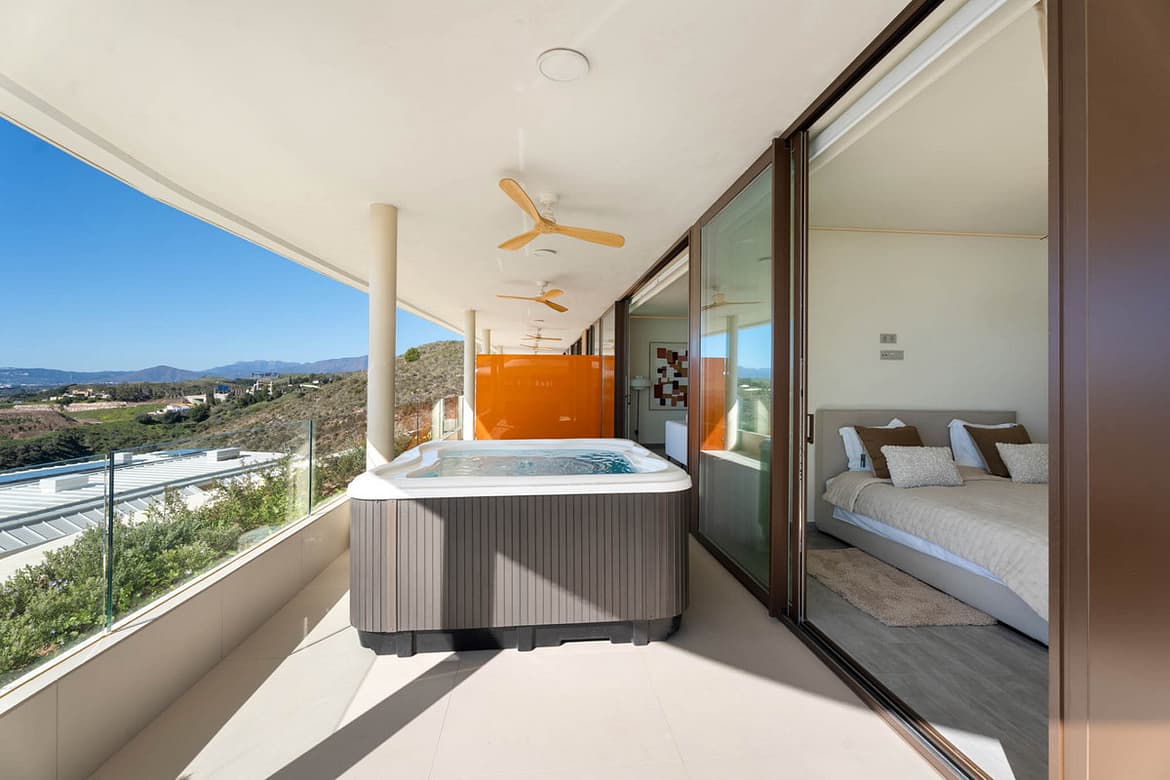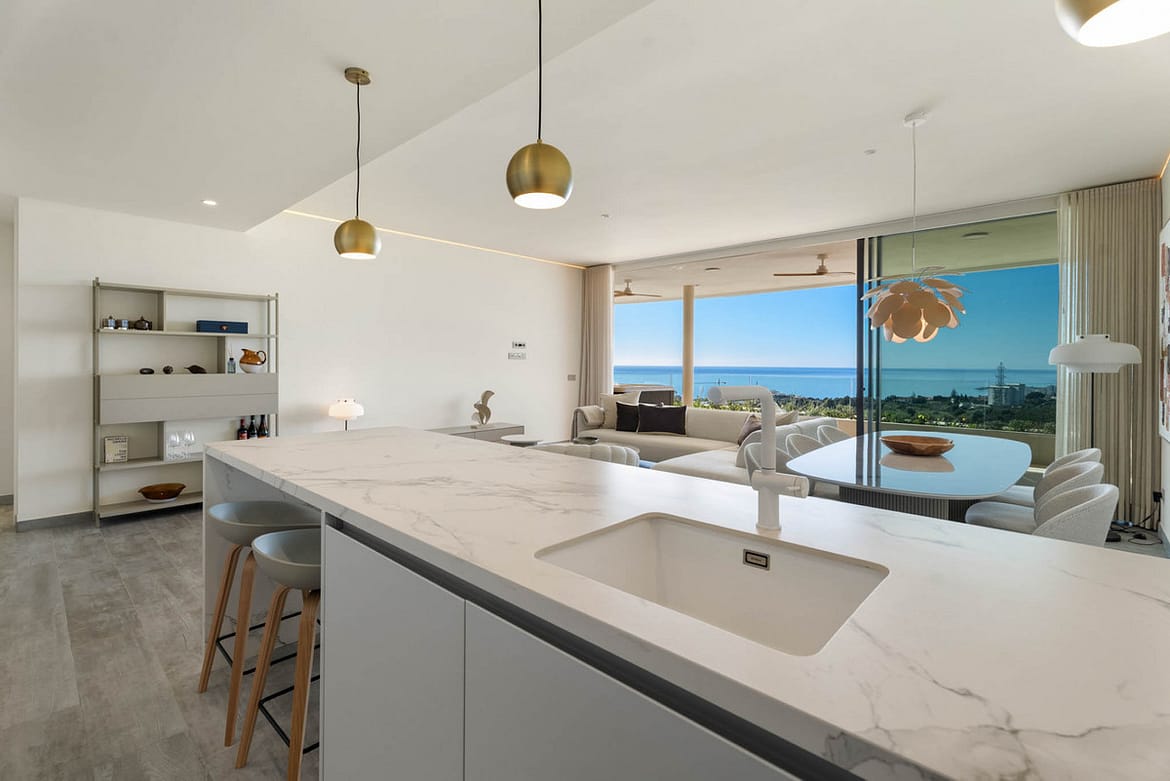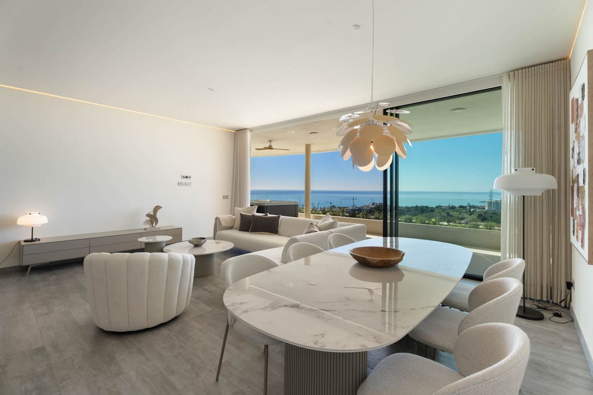 Situaded within a secure residential enclave in El Higuerón, this brand-new three-bedroom corner apartment offers refined contemporary living with open sea and valley views.