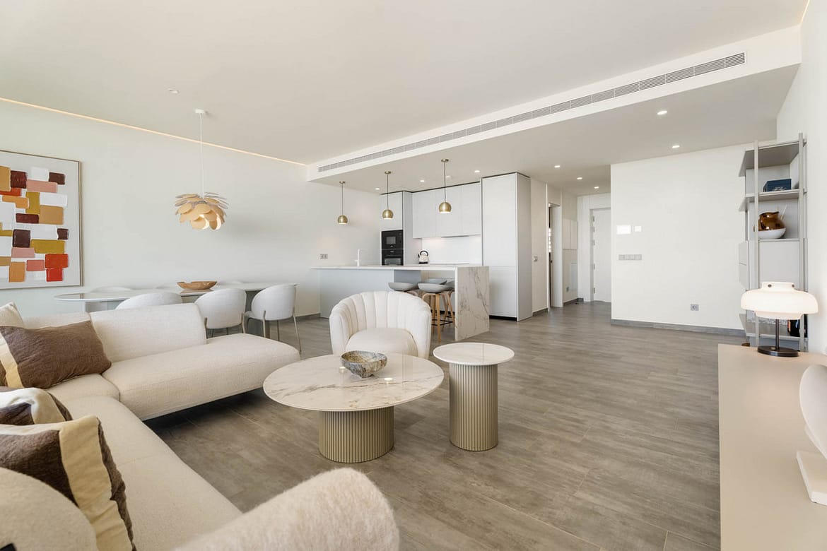With a total built interior of 117,11 m² and a spacious corner terrace, the residence is designed to create a seamless connection between indoor and outdoor living. The southwest orientation ensures natural light throughout the day and evening sunsets over the Mediterranean.
