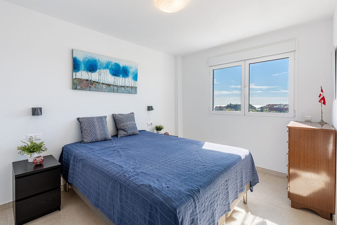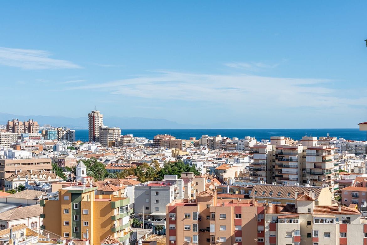 Straight ahead is the spacious and open living area with stunning views over the southwest part of Fuengirola and the sea.