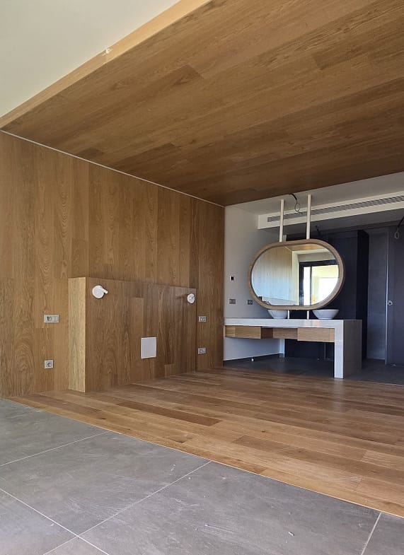 INSIDE – quiet luxury: open plan and spacious, noble materials, clean lines; floor-to-ceiling sliding glass doors that seamlessly extend your living space onto the elegant terrace.The terrace merges with the interior, offering an outdoor living experience.