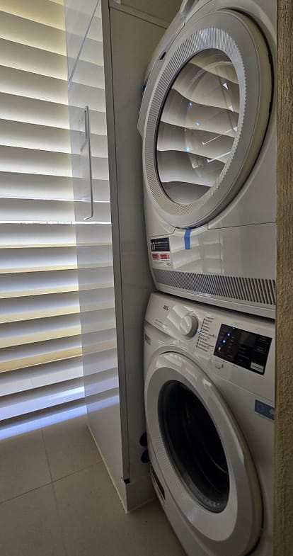 This apartment is distinguished by the ingenious movable wall that connects the master bedroom-suite to the living room. This elongated sliding door is designed to duplicate the entrance of natural light and enjoying much better views.