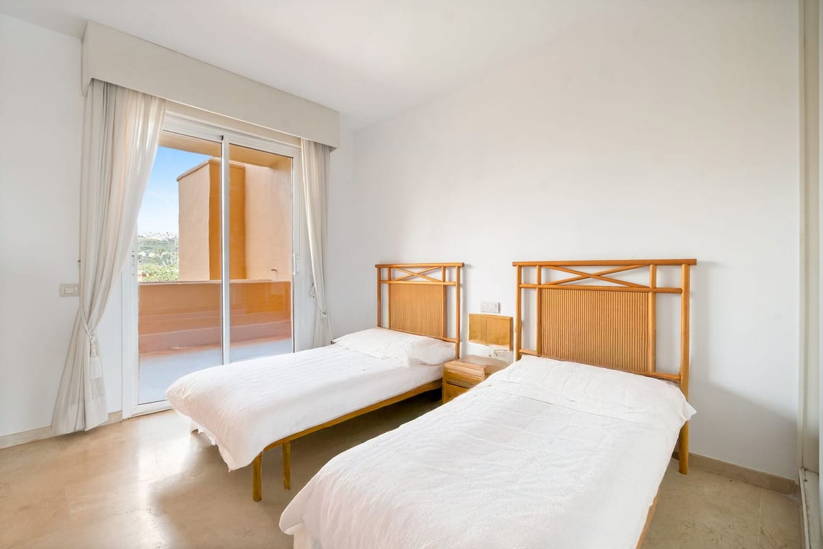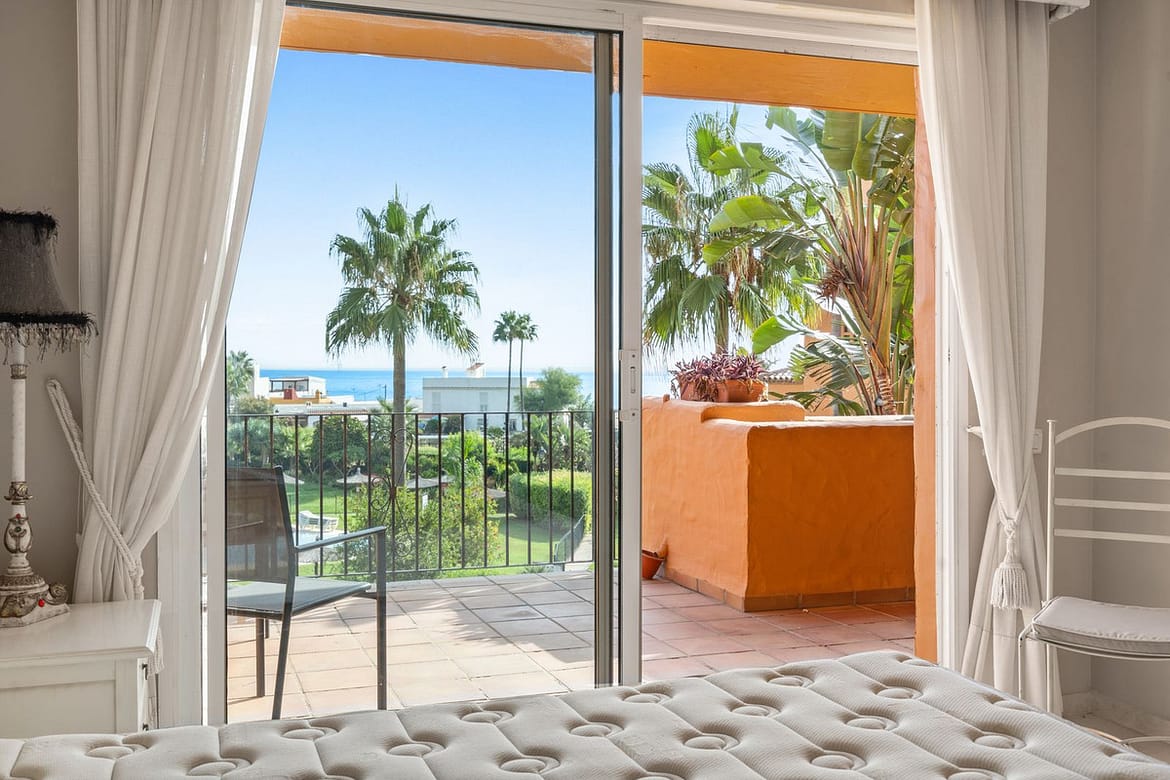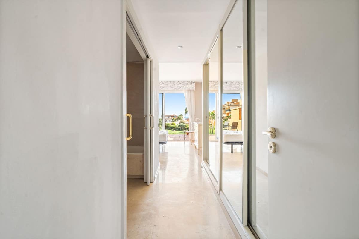 Fantastic first-floor apartment in one of Manilva’s most exclusive beachfront complexes, Los Granados de Duquesa. It offers three spacious bedrooms and two bathrooms. The master bedroom has an en-suite bathroom and direct access to a terrace with sea views, while the second bedroom enjoys another southwest-facing terrace that brings plenty of natural light. The property also features direct access to the beach and promenade, 24-hour security with video intercom and CCTV, as well as individual air conditioning in every room. The community offers a swimming pool and tropical gardens, and the apartment includes a private underground parking space. Just a short walk from La Duquesa marina, this is a unique opportunity to enjoy the Mediterranean lifestyle in an unbeatable location.