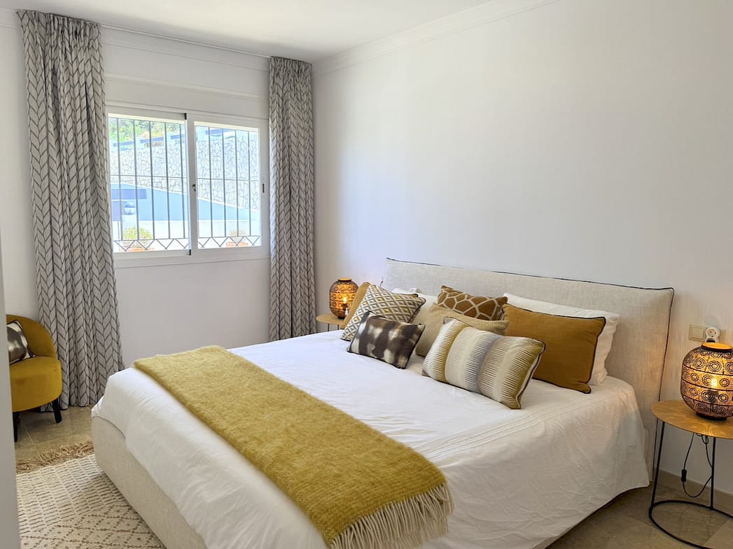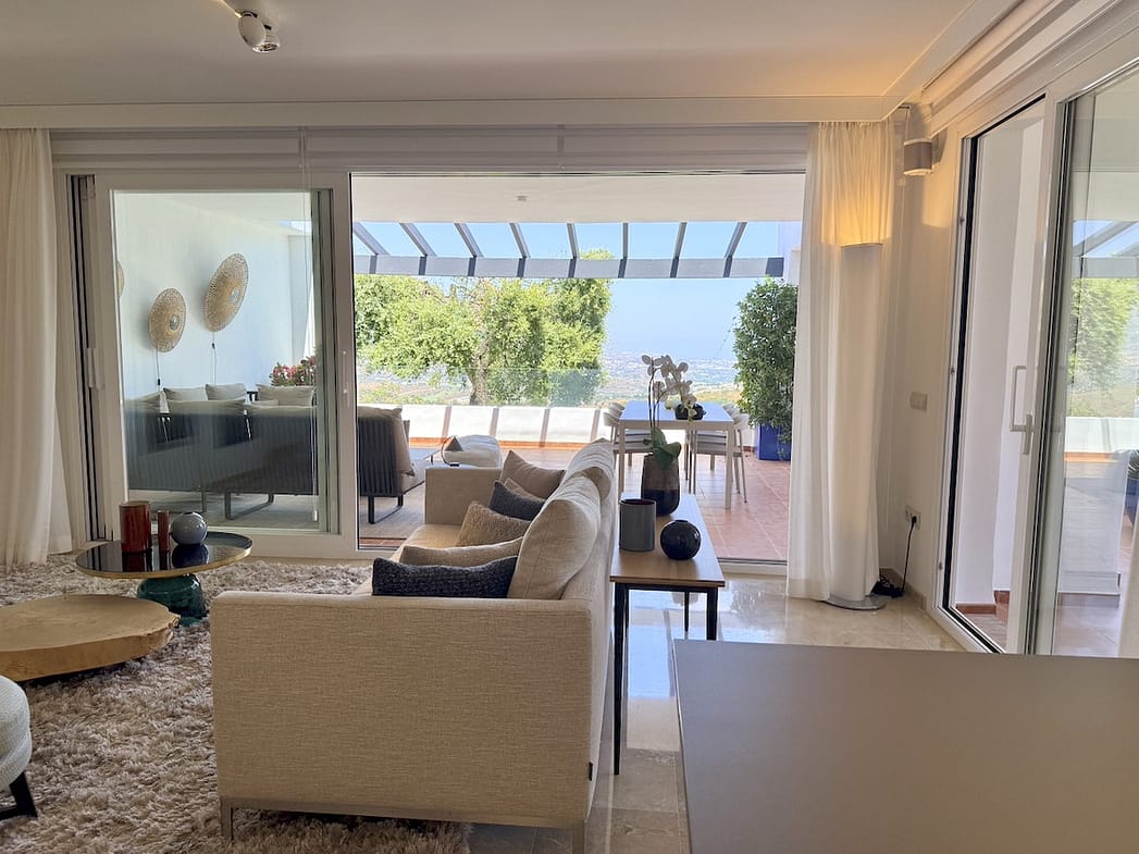 This elegant three-bedroom apartment with 2 private parkings is situated in the sought-after area of La Mairena, Marbella East, offering a harmonious blend of comfort, style, and convenience. The property boasts a generous built area of 148m² complemented by a spacious 53m² terrace, providing ample space for both indoor and outdoor living. Located within a secure gated community, residents benefit from a peaceful environment with mature communal gardens and a large communal pool, perfect for relaxation and leisure.