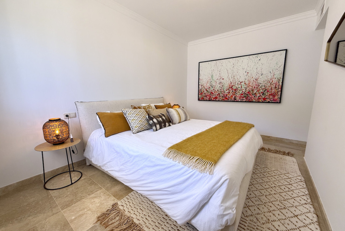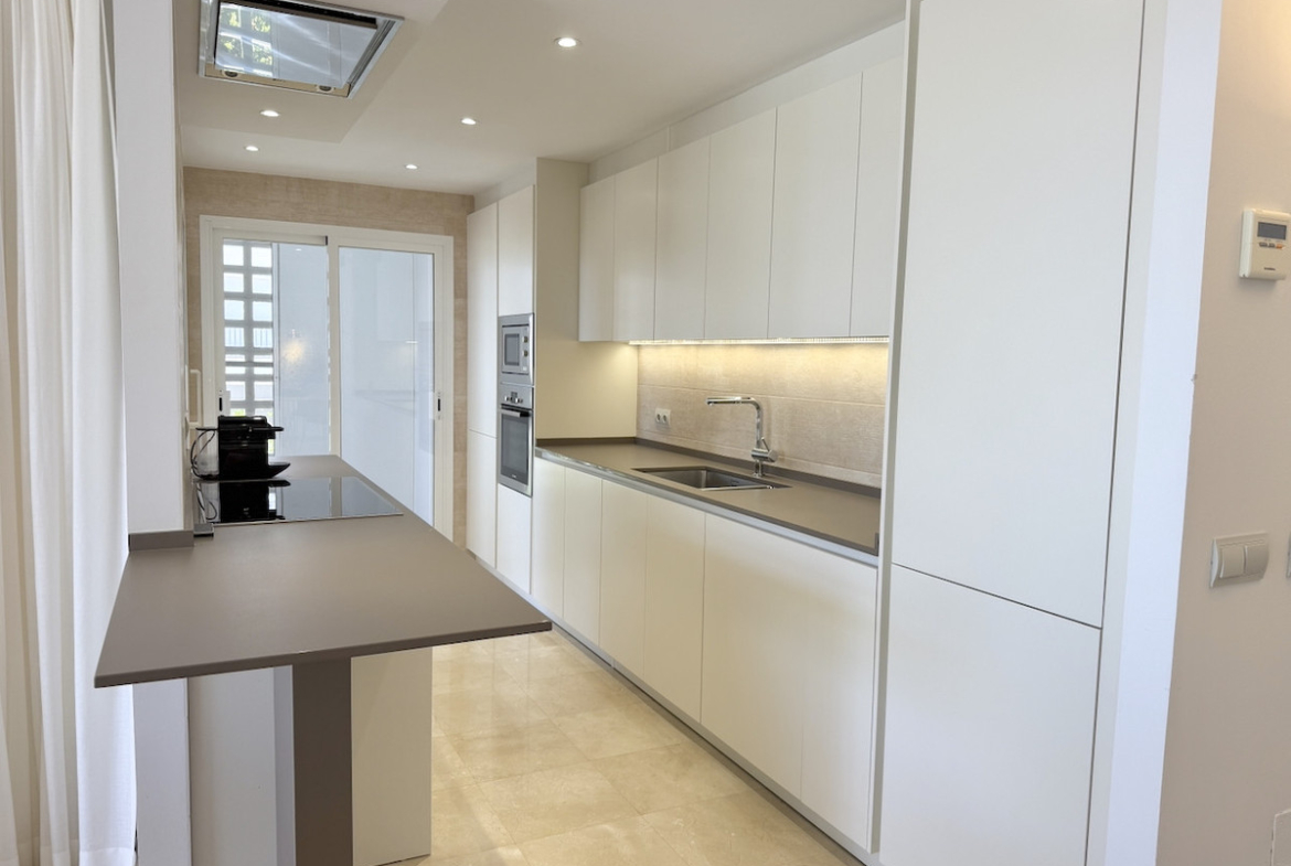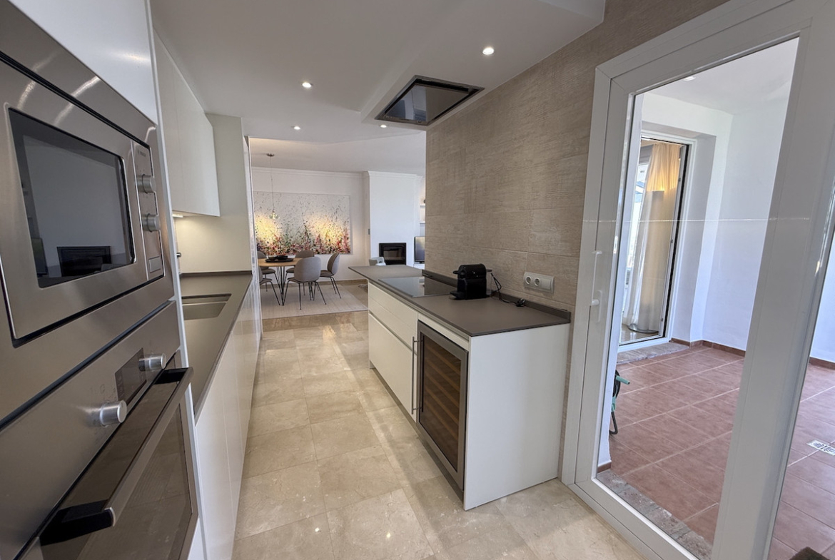 This elegant three-bedroom apartment with 2 private parkings is situated in the sought-after area of La Mairena, Marbella East, offering a harmonious blend of comfort, style, and convenience. The property boasts a generous built area of 148m² complemented by a spacious 53m² terrace, providing ample space for both indoor and outdoor living. Located within a secure gated community, residents benefit from a peaceful environment with mature communal gardens and a large communal pool, perfect for relaxation and leisure.