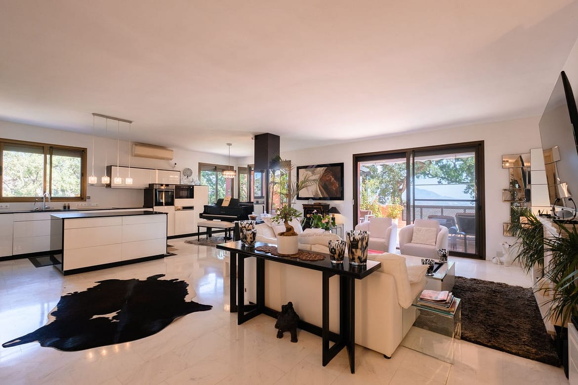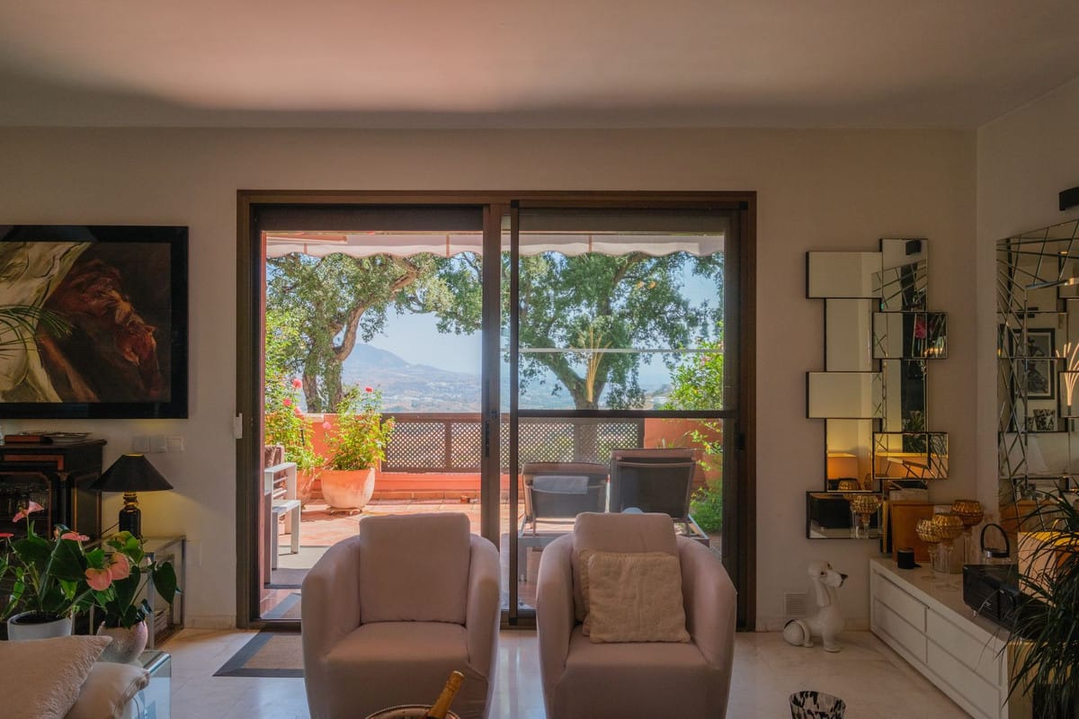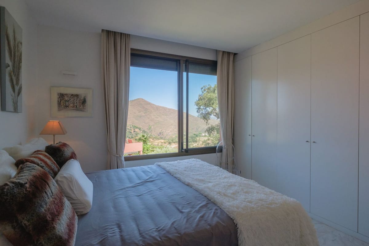 Spectacular corner apartment a highly sought-after area of La Mairena, 3 spacious bedrooms, with east-west orientation and panoramic views of the sea and Mountains. photovoltaic energy. Gated community with lush gardens of 19.000m2 for only 45 apartments + 2 swimming poola. The whole complex is surrounded by protected green zones.. It offers a spacious, modern and very bright living space with numerous windows that open to nature and a fantastic sea views. The kitchen is open concept. It has 3 spacious bedrooms and 2 bathrooms, with a built area 166 m², including 2 terraces of approximately 45 and 10 m². This property includes a storage room and a private parking space in the same building accessed directly per elevator.. The largest of which is an infinity pool with incredible panoramic views of the entire coast. The property is located just 7 minutes by car from Elviria and its beaches. This privileged location, very close to the famous German School, is very quiet and at the same time offers all services. There are several golf courses less than 4 minutes minutes away by car, and the center of Marbella is only 15 minutes away.