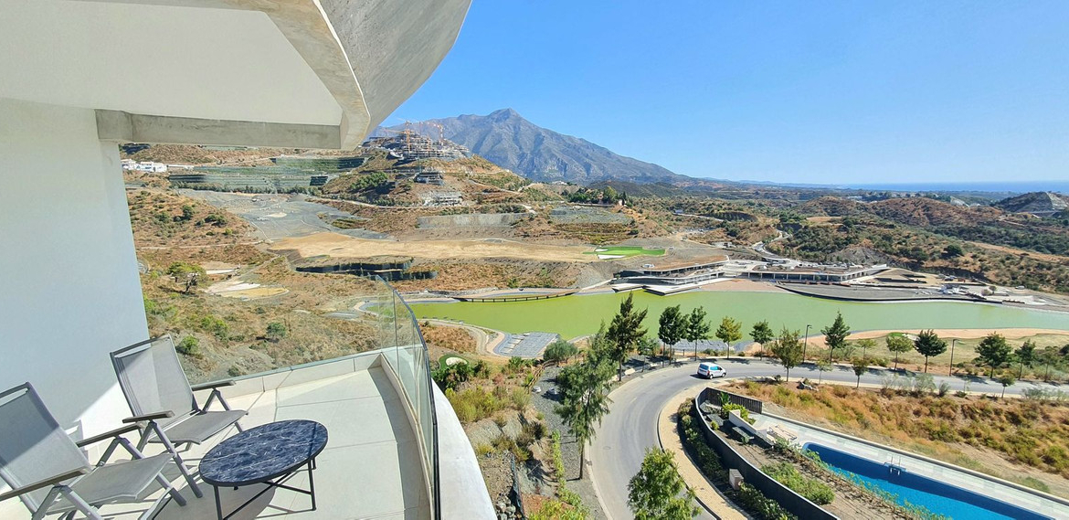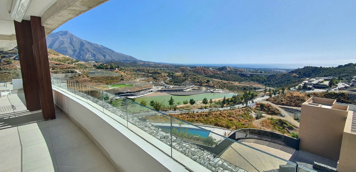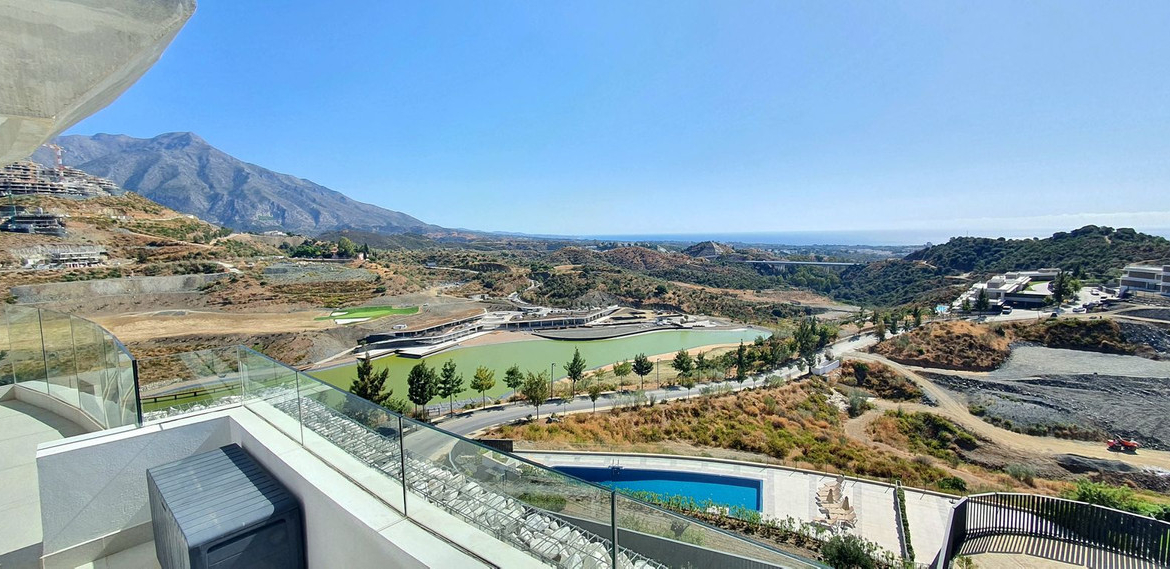 This exceptional south facing corner apartment occupies the most privileged position within the Quercus phase of Real de la Quinta, a brand-new, gated community nestled hilltop above La Quinta Golf. Located on a desirable corner block, it offers truly breathtaking panoramic views of the lake, the Mediterranean Sea, Gibraltar, Africa, and the surrounding mountains, it has arguably the best views in the entire development.