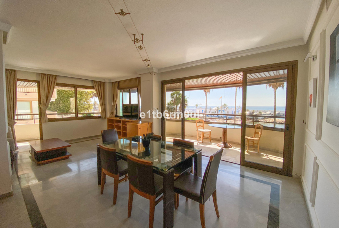 Location · Location · Location. This apartment could not have a better location. With panoramic unobstructed sea views, and in addition, mountain views this spectacular apartment is distributed in a spacious living room with access to the terraces of with spectacular views of the sea and the mountains, three bedrooms, three bathrooms, two en-suite, fully fitted kitchen. Currently in the process of being refurbished it will be ready to move into end of October 2025. Located In one of the best areas of Marbella is this exclusive south-facing building, the apartments are distributed one per floor. It is a great opportunity to acquire a unique home on the seafront of Marbella both to live all year round or as a vacation rental, close to all services, restaurants, shops, a shopping center, and just 5 minutes from the old town. It is sold with a car parking space and storage room.