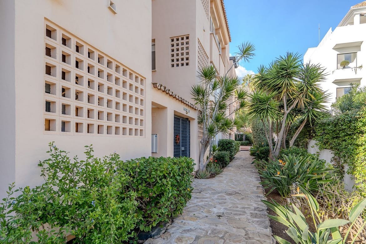 The property includes a storage room and two parking spaces, both included in the price. The subtropical gardens and communal swimming pool are meticulously maintained.