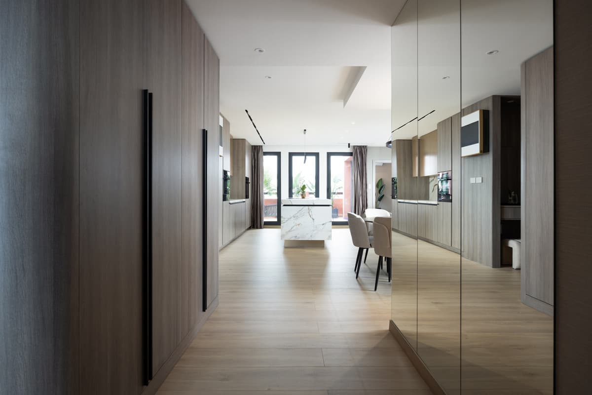 A state-of-the-art smart home system integrates seamlessly throughout the apartment. Concealed LED and ambient lighting, Maytoni designer fixtures, and a Bticino Living Now switch system create mood and ease at the touch of a button. Smart air-conditioning, high-speed fibre internet with boosters in every room, and a fully connected electrical network ensure luxury living in its most intelligent form.