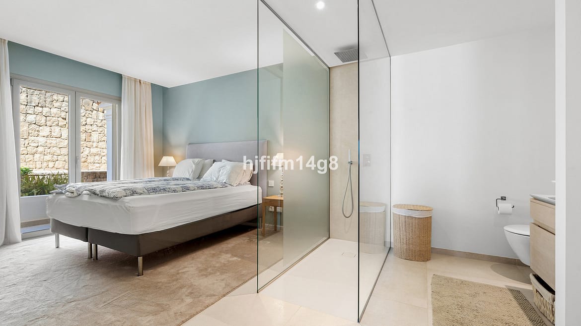 This is a 3-bedroom ground floor apartment. Inside, you will find the state of the art open-plan kitchen with Gaggenau appliances and an open living and dining area. The living area has direct access out to a spectacular large terrace with excellent sea and mountain views. There is a private garden with jacuzzi on it. All the rooms have been exquisitely designed and finished to the highest of standards.