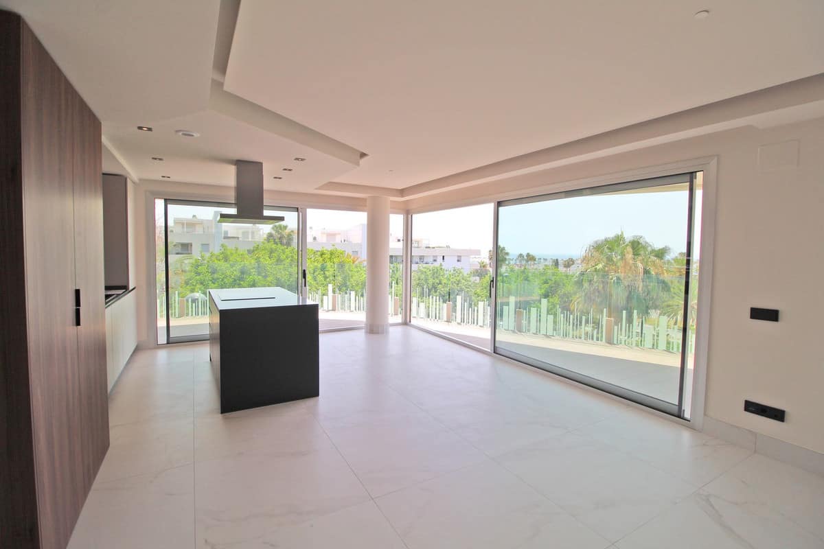Brand new, 3-bedroom beachside apartment. Just a 4-minute walk from the seafront promenade and 3 minutes from the town of San Pedro de Alcántara, it is strategically located next to Puerto Banús in Marbella. The area boasts wide, modern avenues with bike lanes, gardens, and public transportation, all surrounded by restaurants and shops.