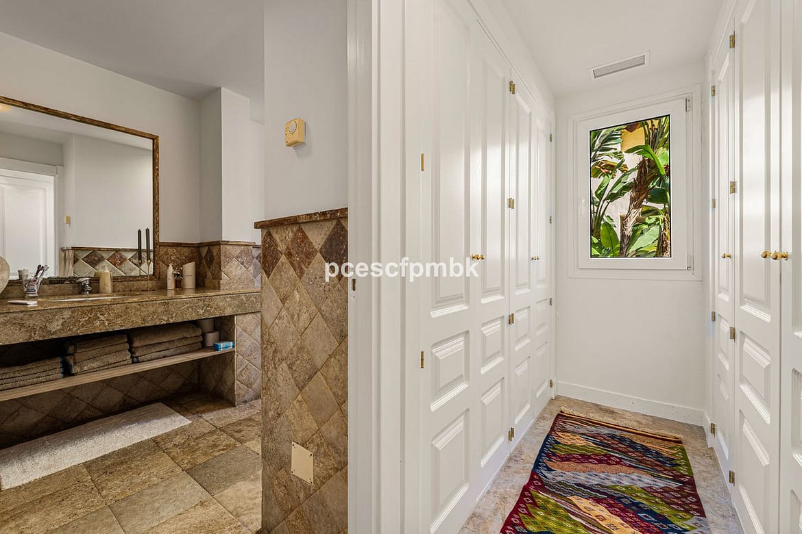 The apartment is partially renovated and ideally oriented to enjoy natural sunlight throughout the day while remaining cool during the summer months. It features three bedrooms, one of them with en-suite bathrooms, ample built-in wardrobes, and well-separated living areas that provide privacy and comfort.