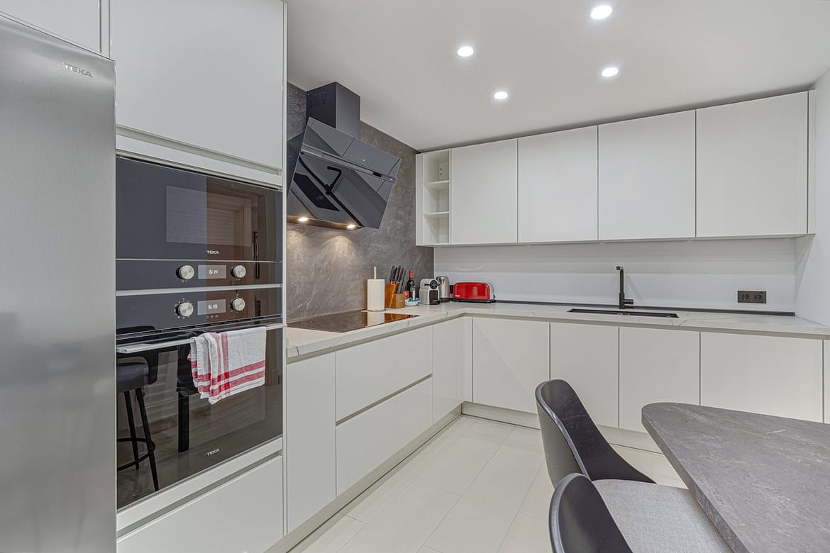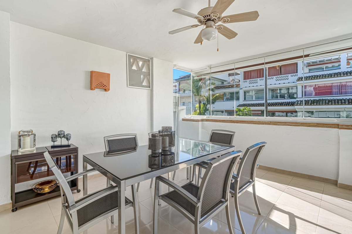 Excellent, fully renovated, three bedroom first floor apartment on Marbella’s Golden Mile, in the sought after frontline beach community Las Cañas Beach, with 24hr security service, several communal swimming pools and tropical gardens. As well as being only a short walk to many bars, shops and restaurants. Casablanca Beach, one of the best on the coast, is just outside the front door. The apartment has a spacious open plan living and dining area with French doors leading out to the private terrace which is enclosed with glass curtians; fully fitted kitchen; master suite with access to the terrace; two guest bedrooms and a guest bathroom. Other features include hot and cold air conditioning, and fitted wardrobes.