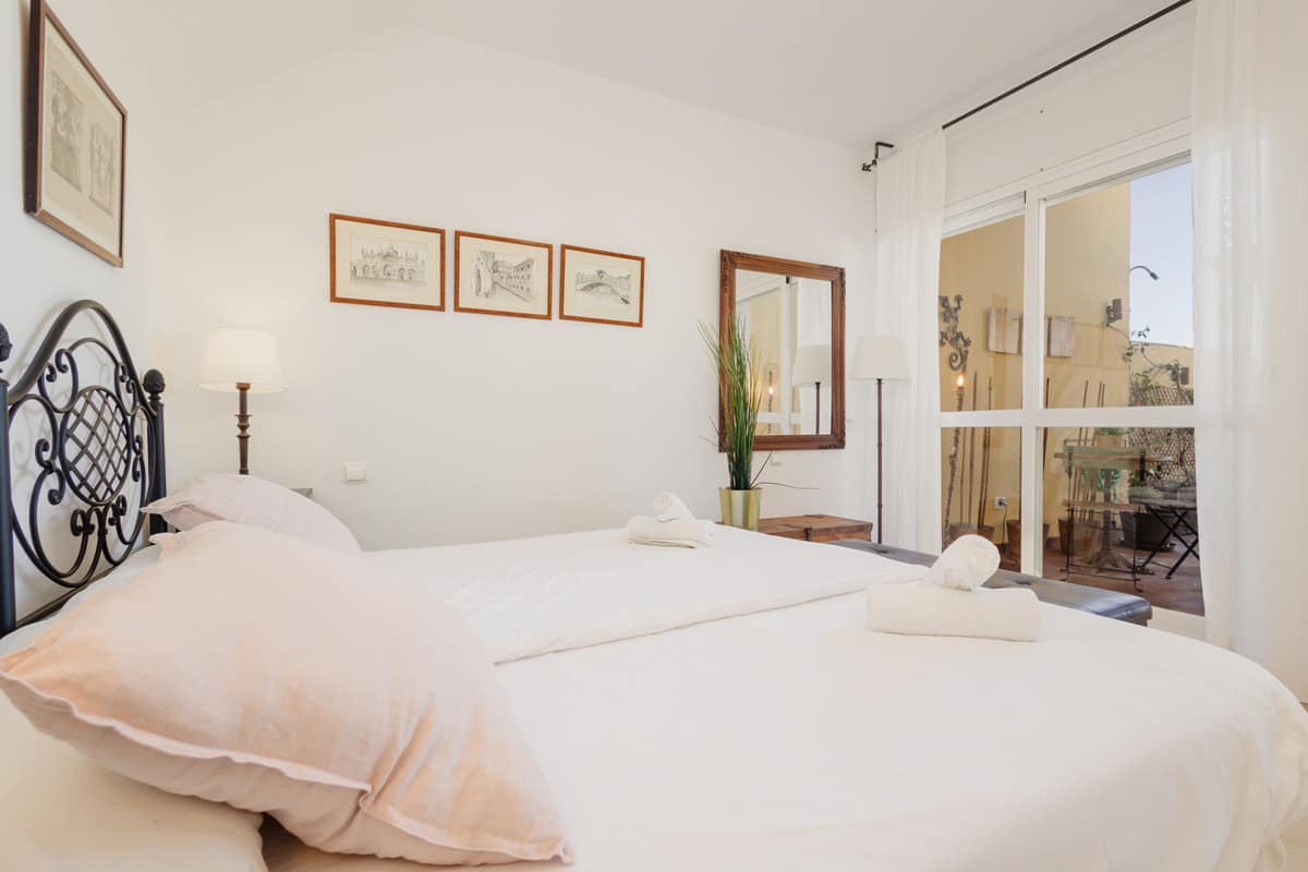 The master bedroom has a 180x200m king-size bed and blinds for a good night's sleep. You also have direct access to the beautiful terrace, which is equipped with an outdoor sofa with a small coffee table and 2 sun loungers to enjoy the sun.