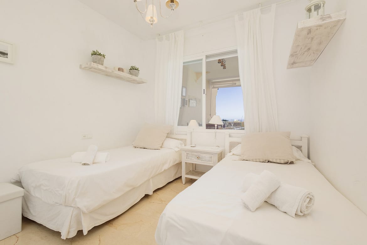 The other room is equipped with two single beds, 90x200m, which can also be put together into a double bed, here too you will find blinds and curtains.