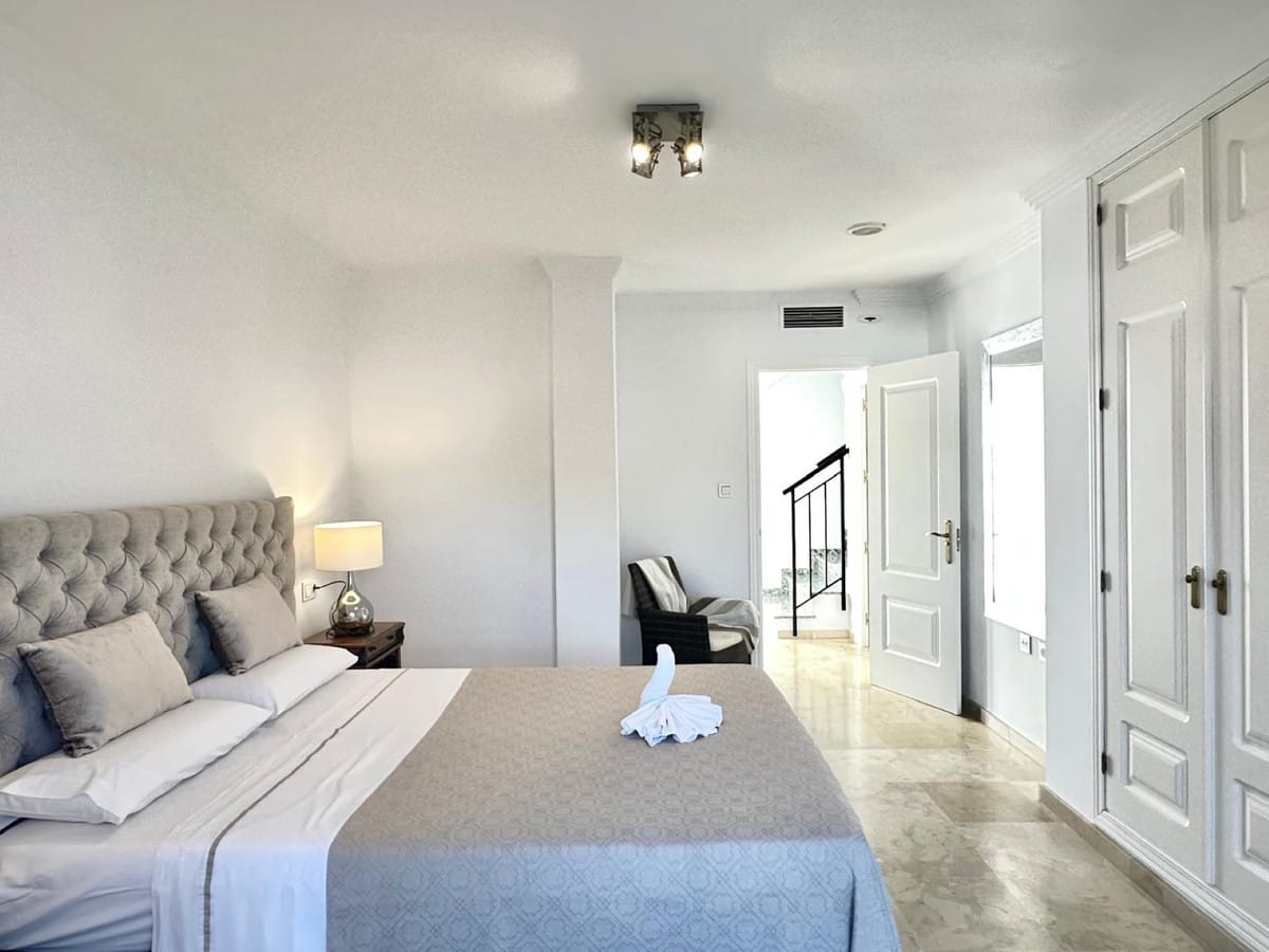 This fantastic duplex penthouse is located in the prestigious area of Las Lomas de Rio Real, in East Marbella, offering a privileged setting between the sea and the mountains. The property is situated in a gated community with security and enjoys proximity to all amenities, children’s areas, public transport, the beach, and Marbella’s city center.