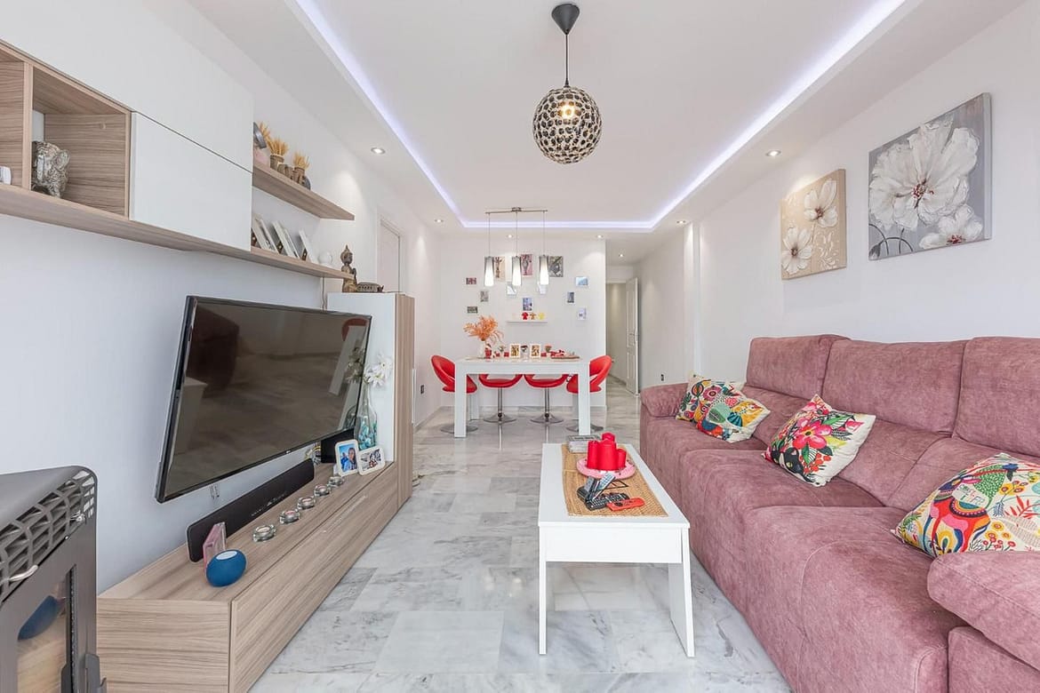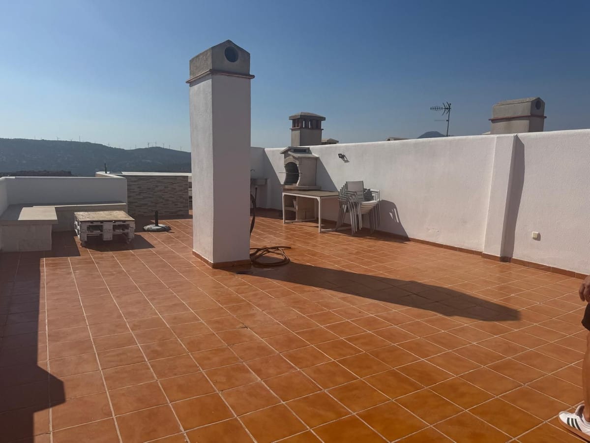The property offers 85 m² of built space, distributed across three bright and spacious bedrooms, two bathrooms (one of them en-suite), and impressive outdoor areas: a 36 m² terrace and a private 84 m² solarium boasting panoramic views of the sea and the mountains.