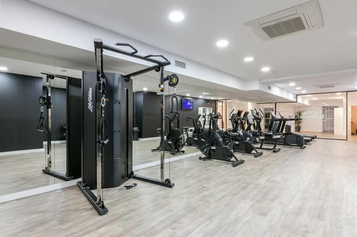 Residents of this modern complex enjoy an impressive range of amenities, including a fully equipped gym, on-site bar, and dedicated work and co-working spaces, catering perfectly to both leisure and remote-work lifestyles.