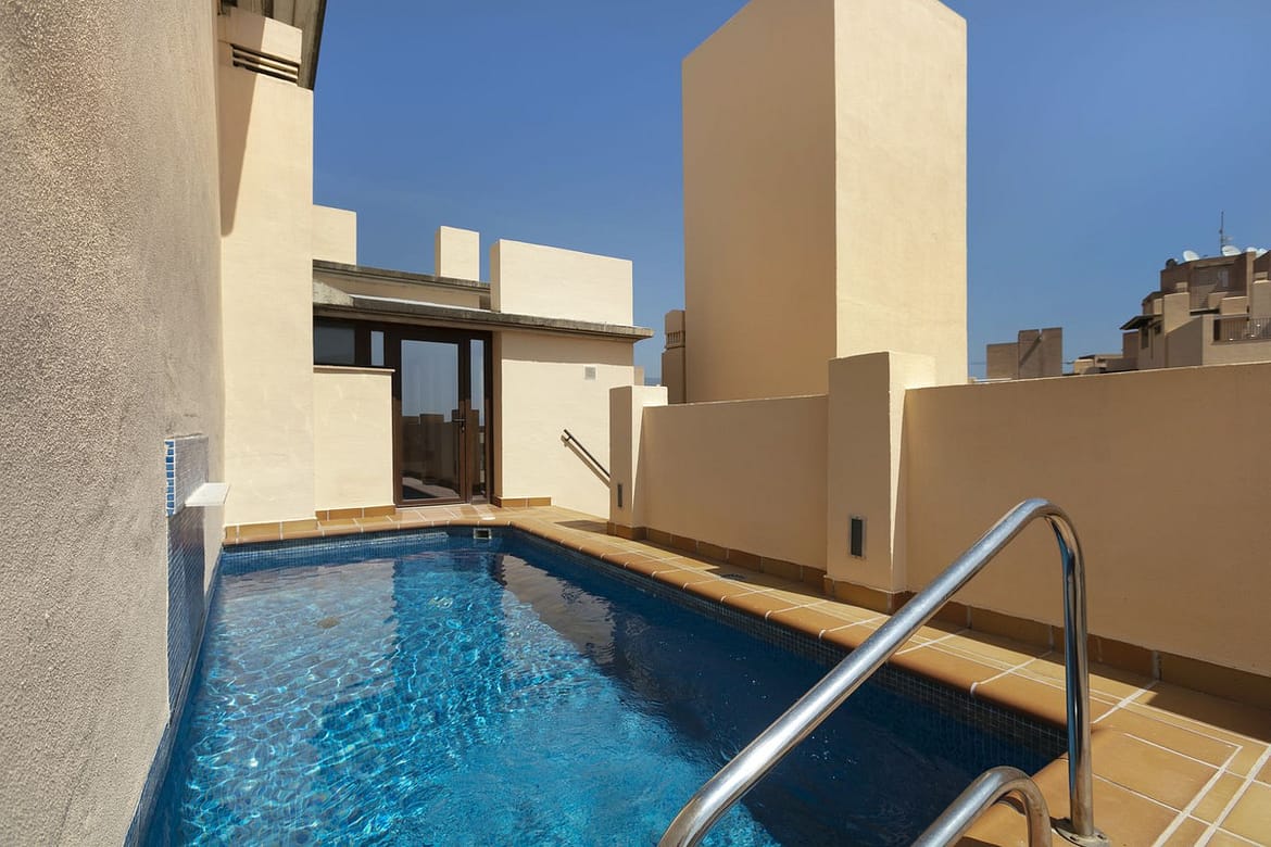 Stunning 3 bed duplex with private rooftop pool located in the exclusive beachfront urbanisation Bahia de la Plata.