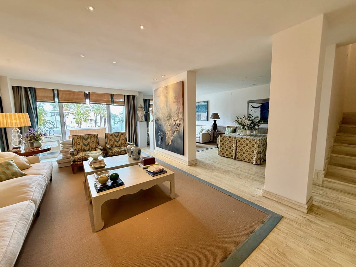 This elegant 2-bedroom penthouse in the sought-after Alcazaba Beach complex combines Mediterranean charm with modern comfort. Originally designed as a 3-bedroom apartment, it has been transformed into a spacious home with a large living area and a separate dining room, enjoying a south-facing orientation with breathtaking sea and garden views.