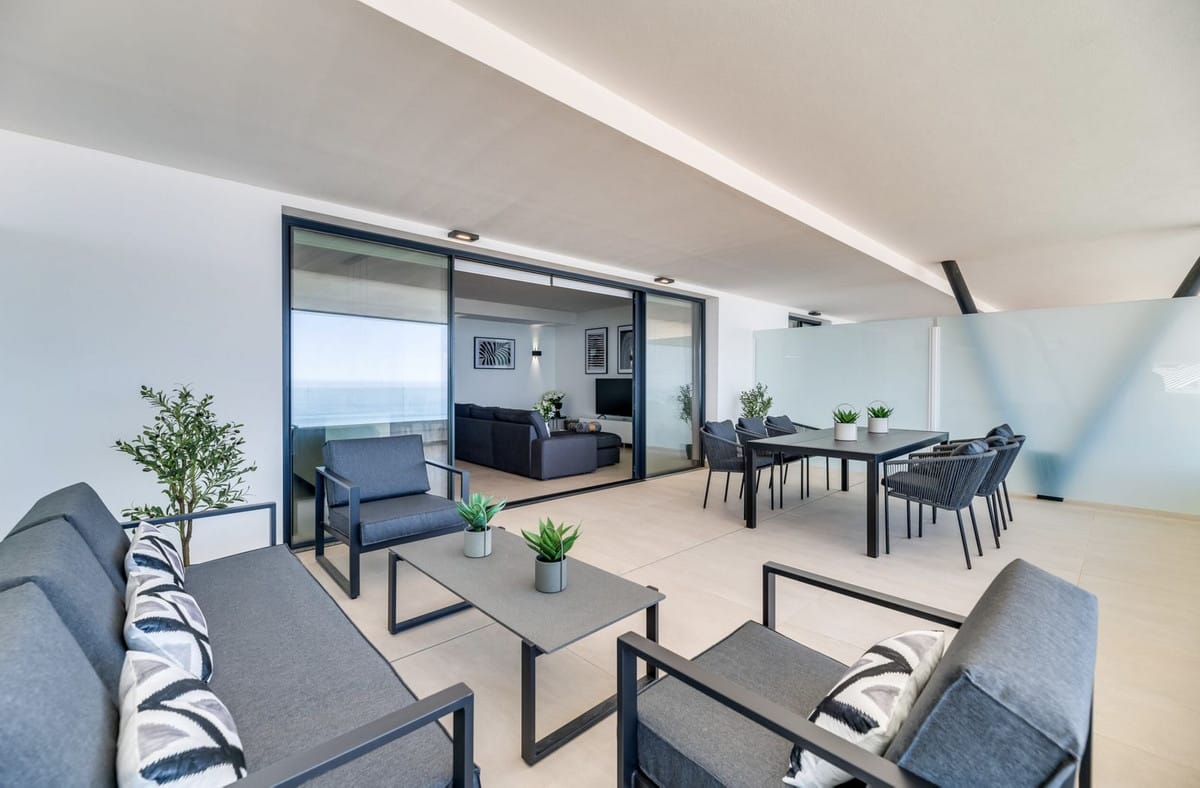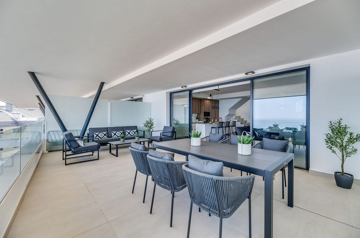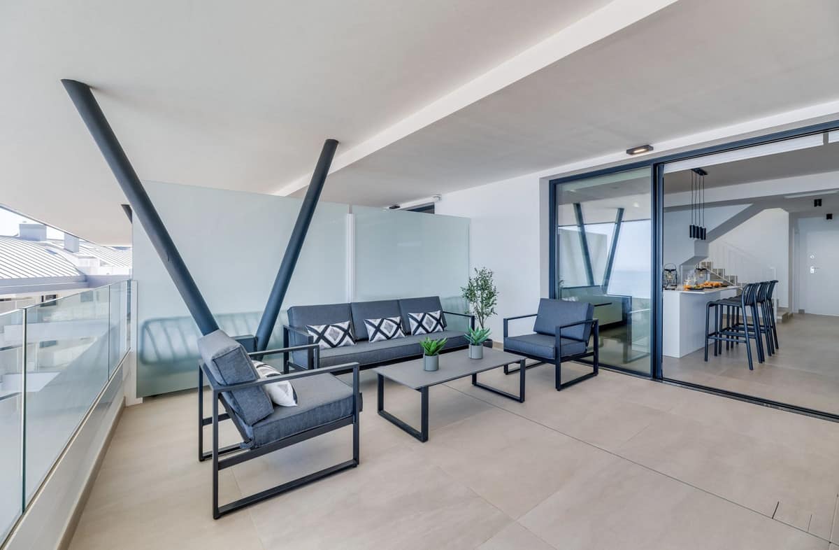 2 of the bedrooms with bathroom en suite and access to the upper terrace with sea views.