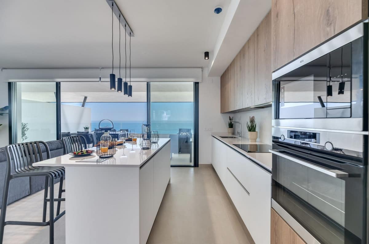 Fully equipped kitchen open to the living room, 2 terraces facing the sea.