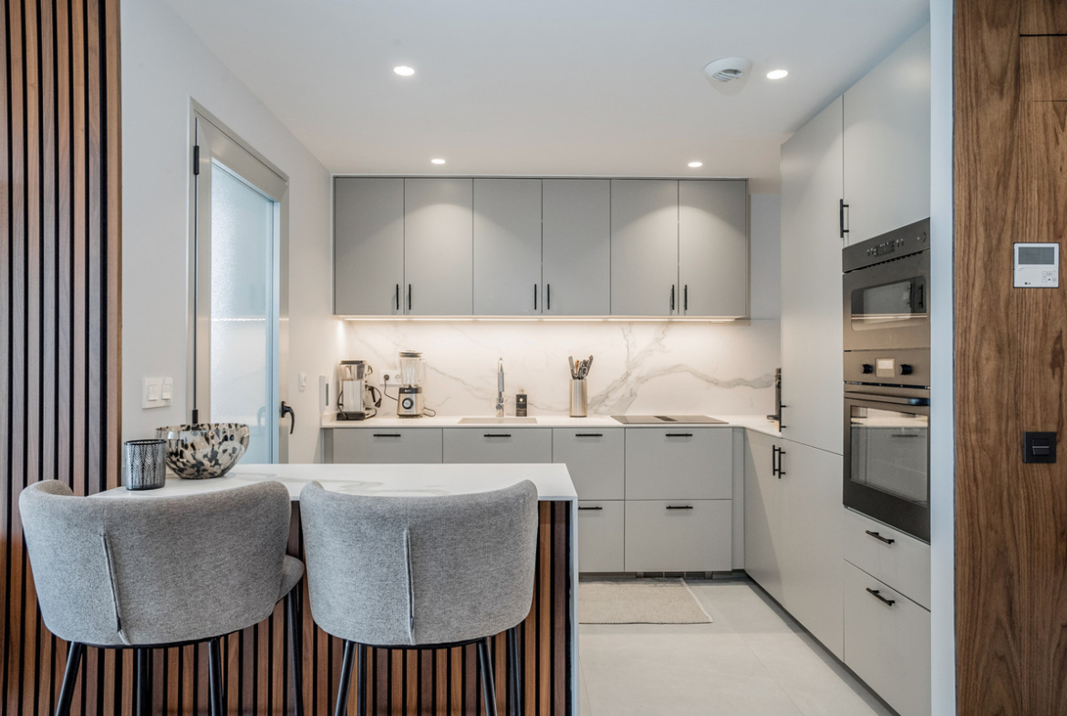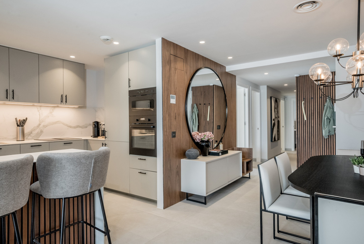 When you step into the home, you are greeted by a well-planned floor plan. One part of the penthouse consists of three spacious bedrooms with built-in wardrobes, one of which has its own en-suite bathroom. The social areas include an open, modern kitchen that provides a seamless connection with both the dining area and the living room.