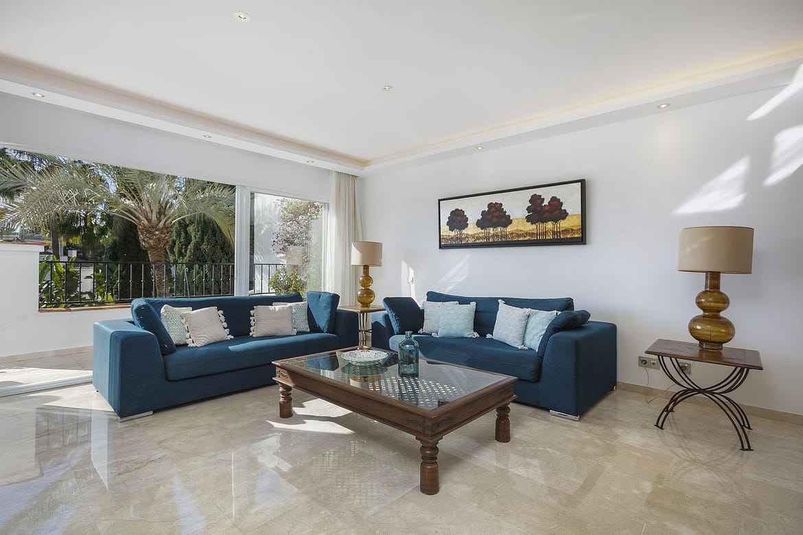 Señorio de Marbella is close to everything; Puerto Banus and Marbella Town are no more than seven minutes away by car, the famous Puente Romano Hotel and Spa is within a few hundred meters of the community and here you can dine in a choice of seven different amazing restaurants, two of which are Michelin starred. There are dozens of less exclusive but nevertheless excellent restaurants within a few minutes’ drive and shops and supermarkets are all close by. The sandy beach, one of the best on the coast, is within easy walking distance (although it is uphill on the way home so you may wish to walk down but grab a cab on the way back). Motorway access is within three minutes so you are near to every conceivable facility including the Golf Valley of Nueva Andalusia which boasts no less than four championship golf courses, all within a ten minute drive of the apartment.