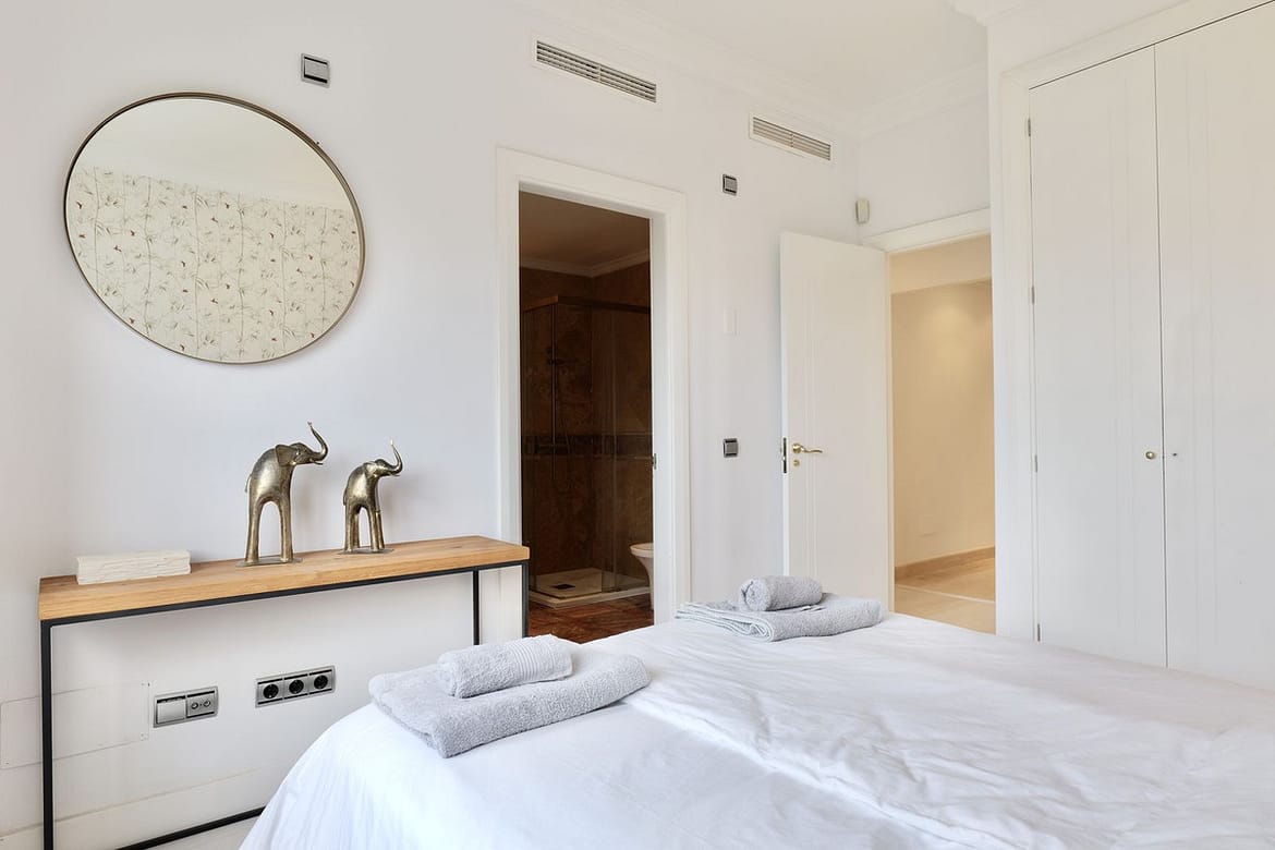 The apartment is tastefully furnished and designed for easy living. It includes a fully fitted kitchen, generous living and dining areas filled with natural light, and access to a covered terrace that provides a pleasant space to unwind. Each bedroom benefits from built-in wardrobes, while the additional bathrooms ensure maximum privacy and convenience for all guests.
