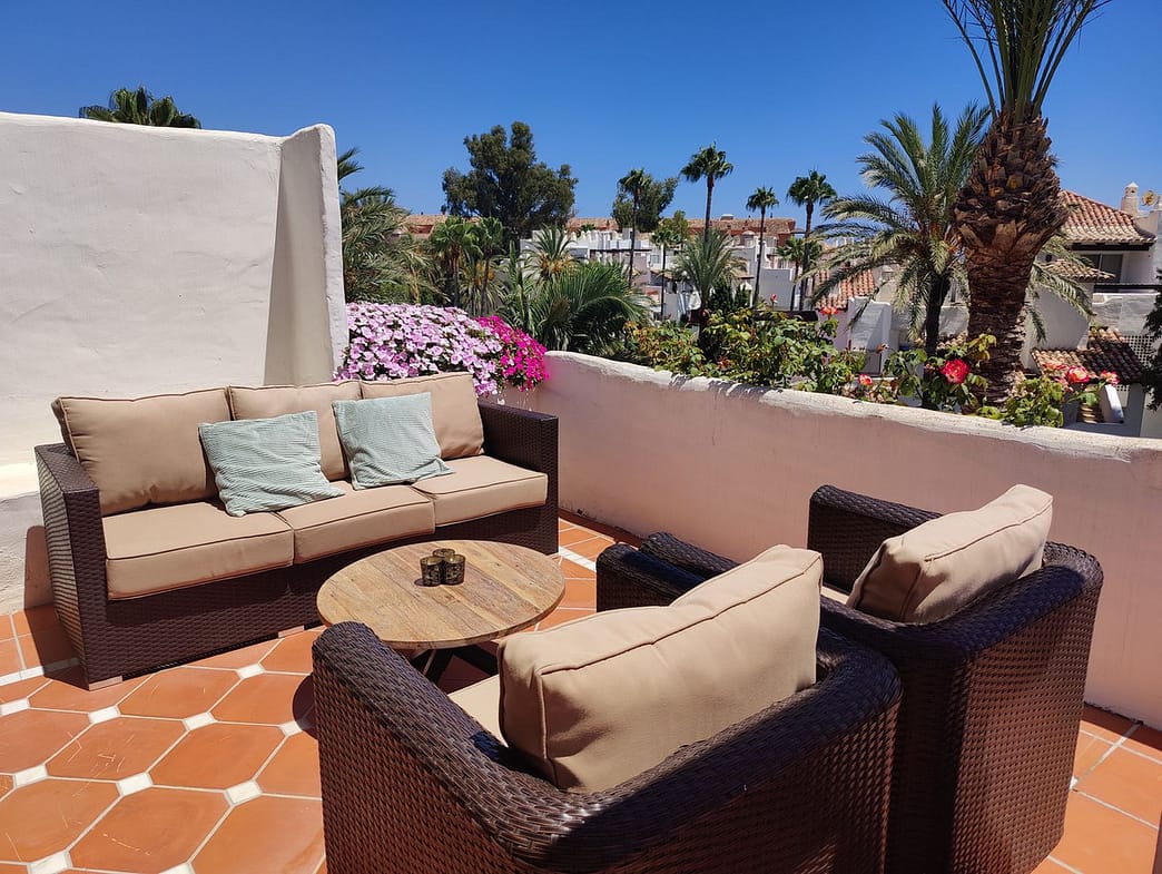 Exclusive, south facing duplex penthouse with partial sea views in one of the most prestigious beachfront developments in Puerto Banús (Marbella).