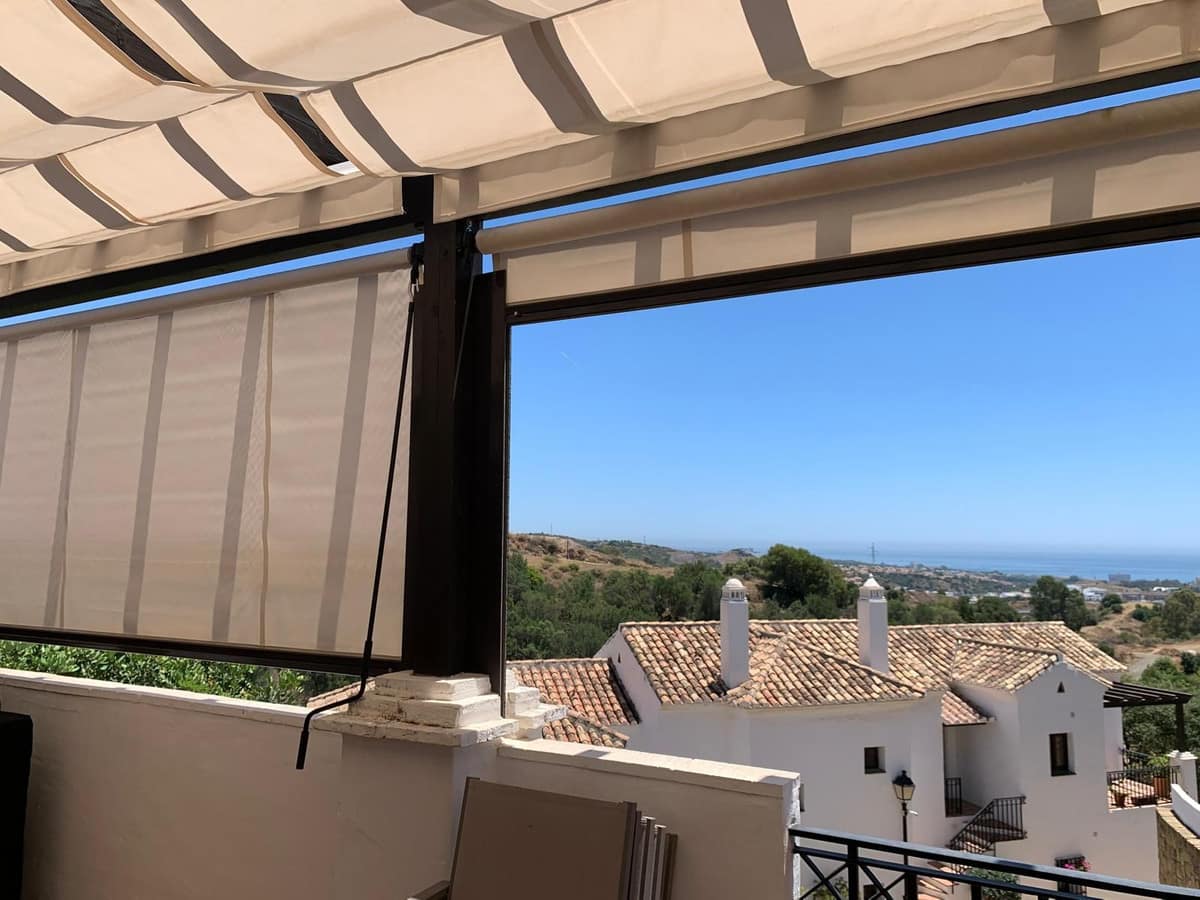 Discover this exceptional duplex penthouse in the charming Andalusian-style village of Pueblo Altos de Los Monteros, offering spectacular panoramic sea views from both levels.