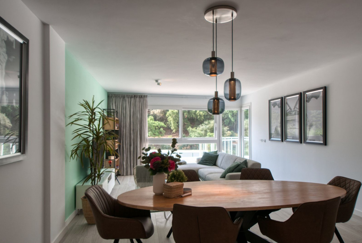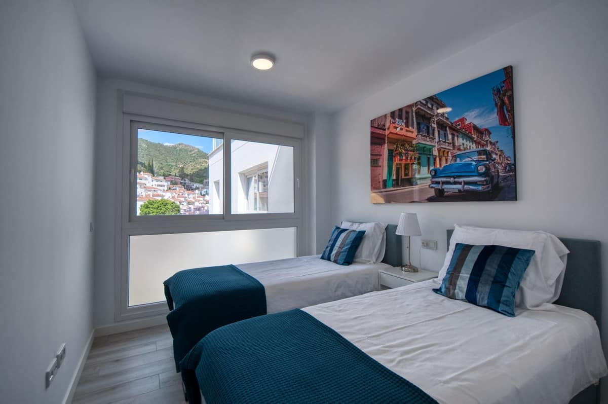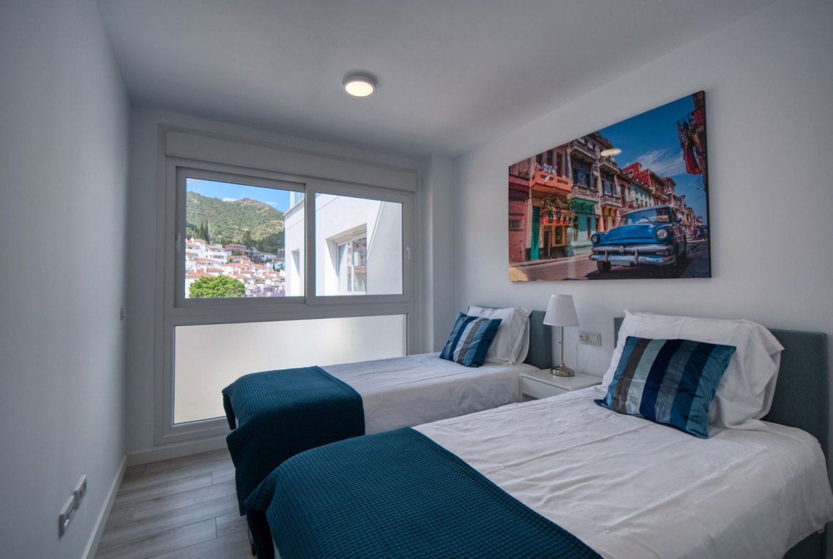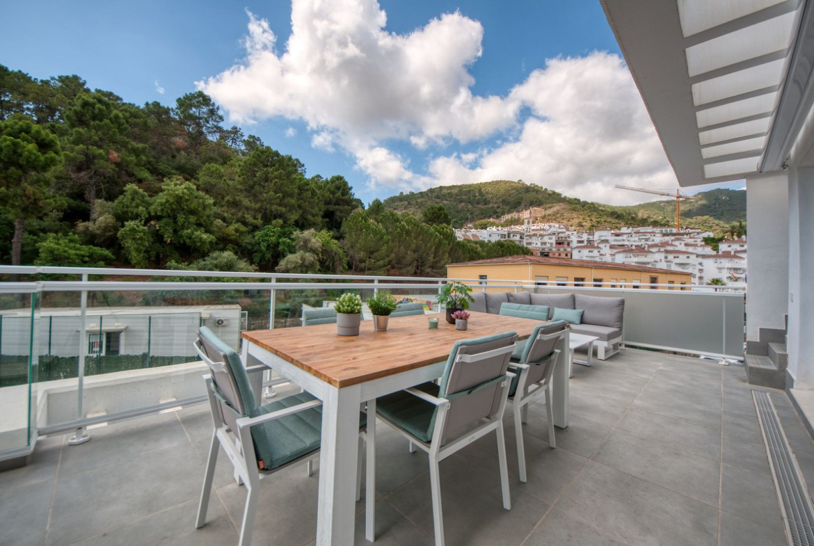 Spacious penthouse in Benahavis with the following layout. The main floor features an open-plan living area leading to a terrace with views over the pool and village. The modern kitchen is fully equipped with top-of-the-line appliances and additional storage.