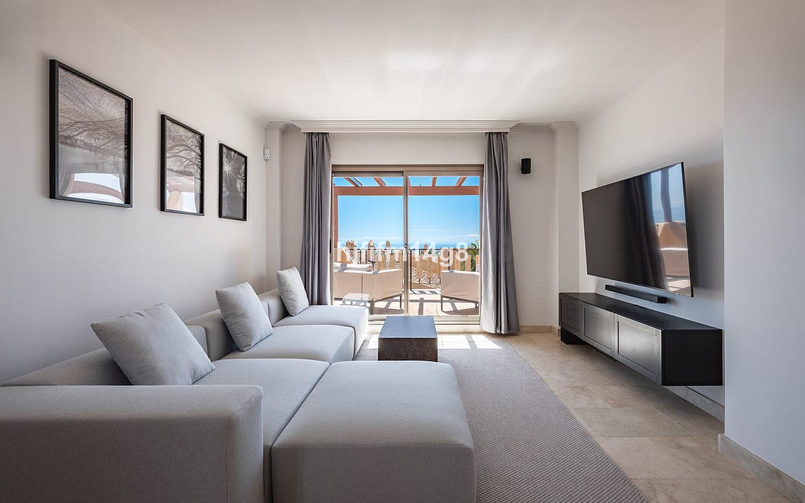 This luxurious single-level penthouse offers stunning panoramic views of the sea and mountains. The property features an entrance hall leading to a spacious living and dining area, which opens onto two terraces: one facing southeast with views of La Concha mountain, the Atalaya Golf Course, and the Mediterranean Sea; the other facing south/southwest, showcasing sweeping vistas of the sea, Gibraltar, and the North African coastline.