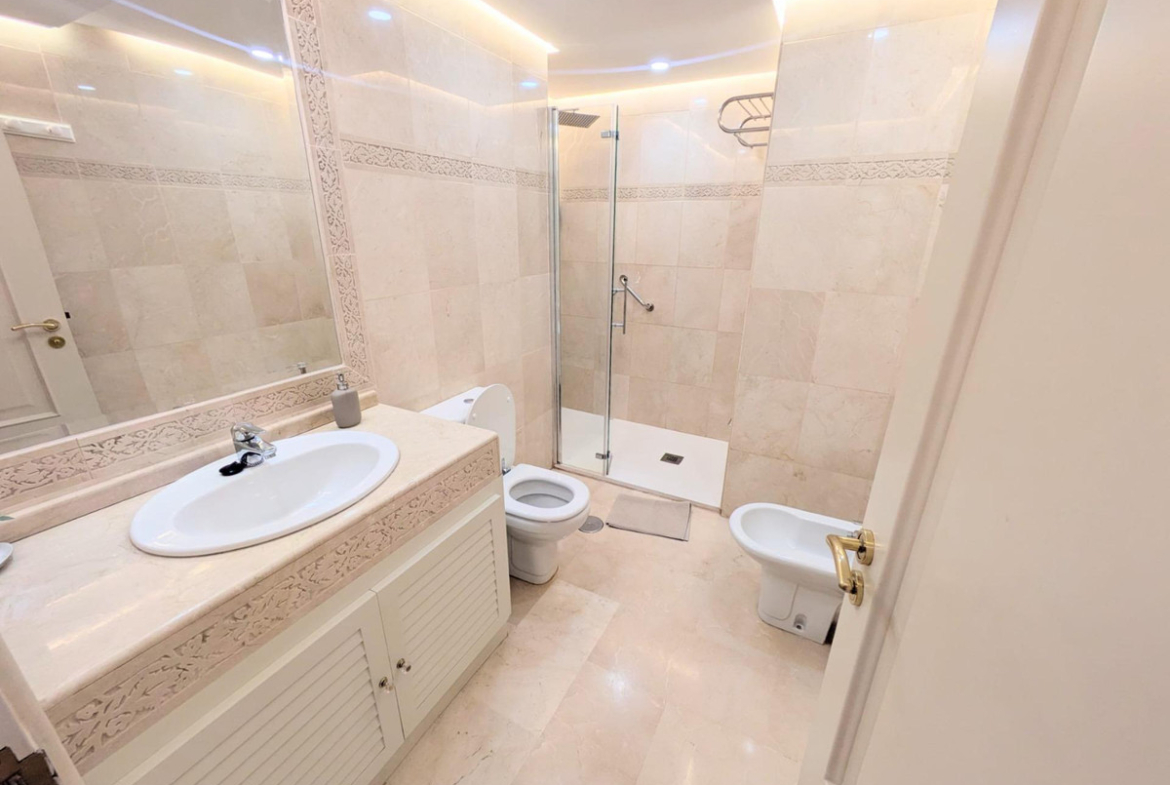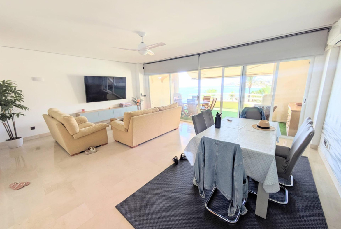 The property offers stunning views of the sea and the port from its three terraces. It also consists of a spacious living-dining room, a fully equipped kitchen, three bedrooms with built-in wardrobes, and three bathrooms. The upper floor, with its bedroom, en-suite bathroom, and one of the terraces, offers complete privacy. It has a separate entrance and direct access to the solarium. The penthouse has been completely renovated, including floors, windows, bathrooms, and kitchen.