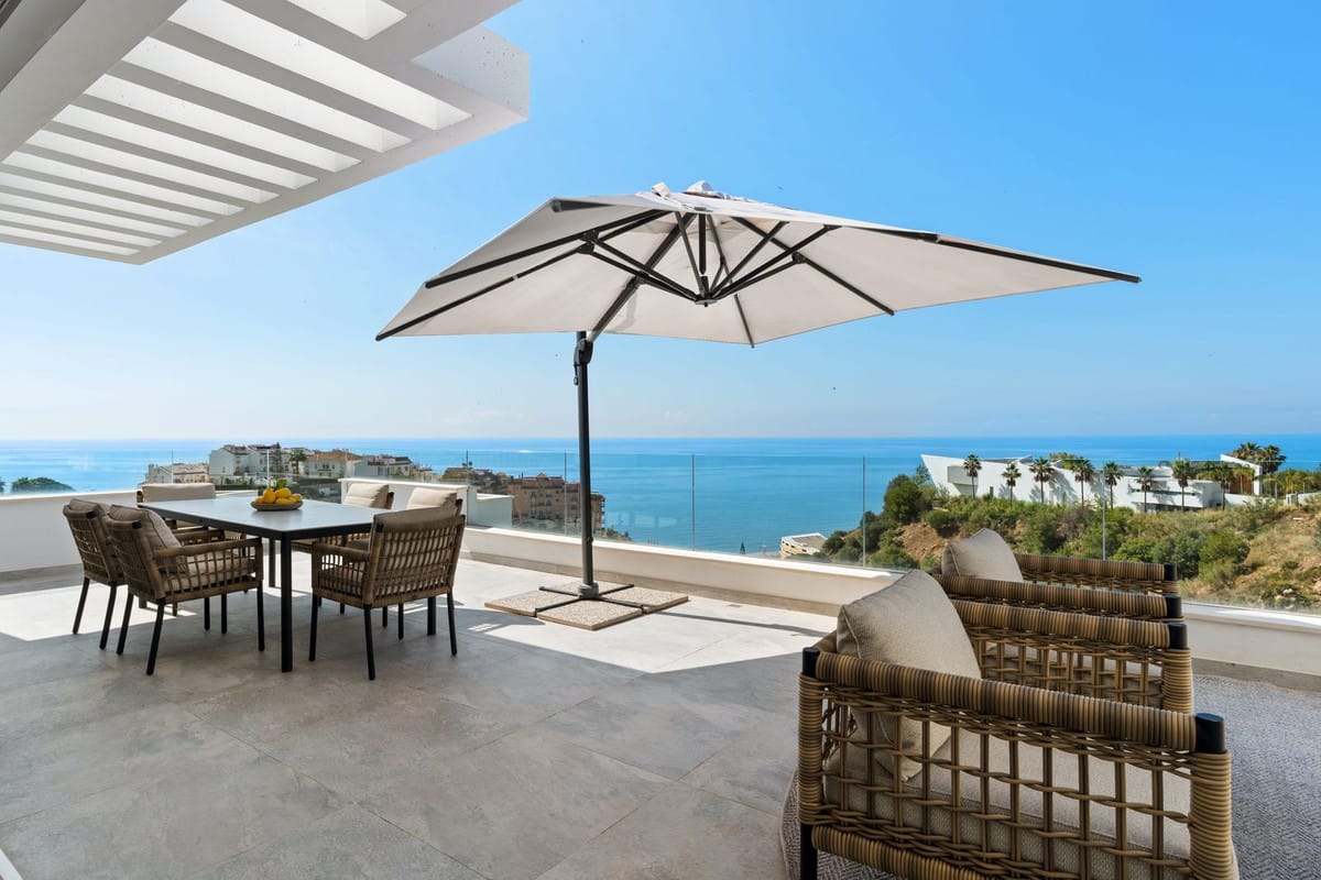 A rare corner penthouse designed for the Costa del Sol lifestyle — sea views from every window, exceptional outdoor living and a peaceful setting just a short walk from Carvajal Beach, the promenade and its beachfront restaurants.