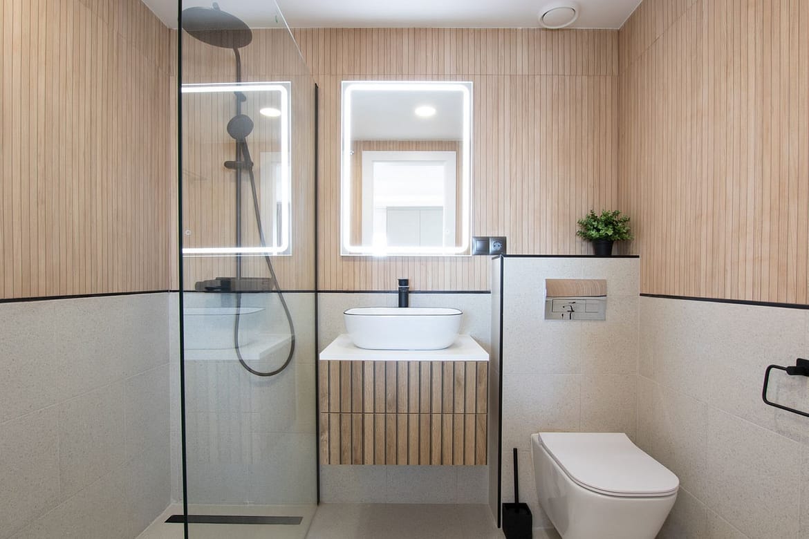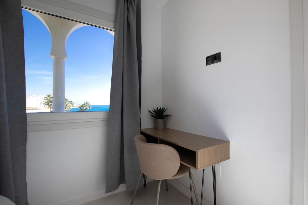 There are 3 bedrooms with fitted wardrobes, each bedroom has a window with sea views. There are 2 full bathrooms with shower trays, completely renovated with a minimalist style. There is no elevator, it is a second floor, once on the floor there are no stairs, the floor and the terrace are on the same level.