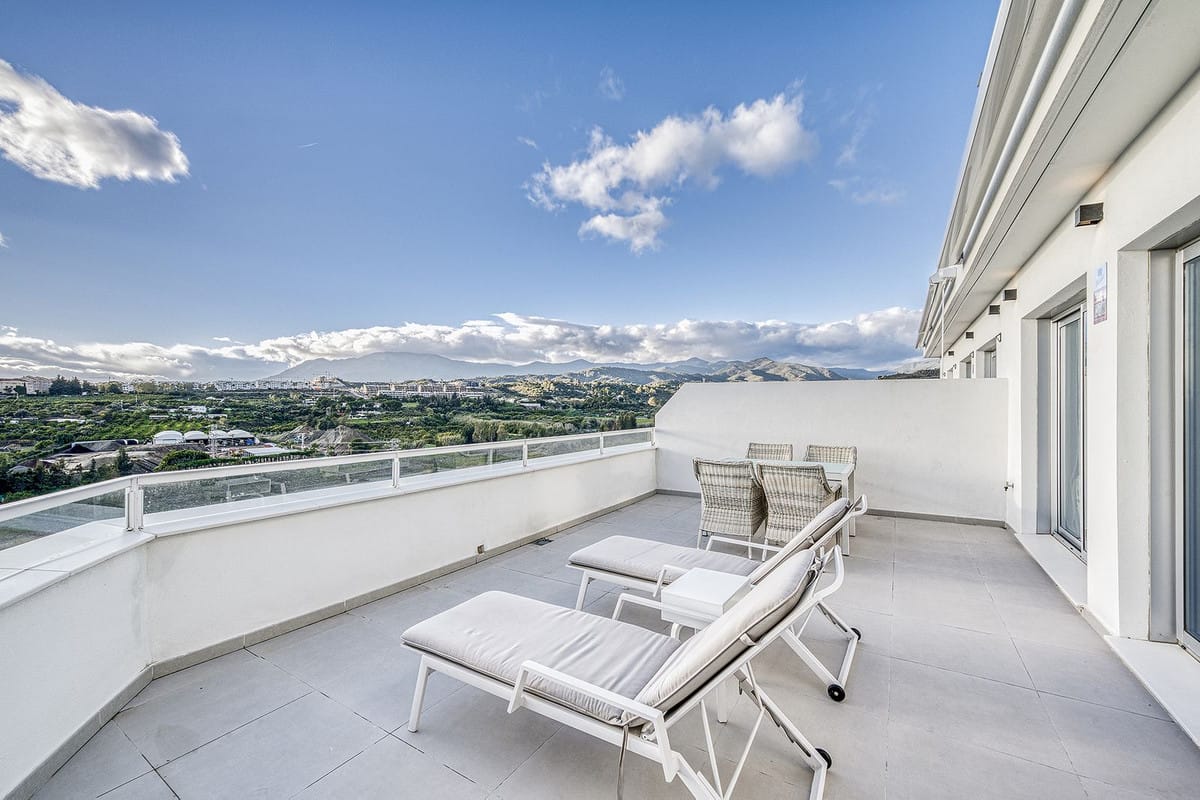 This elegant 3-bedroom penthouse is located in Cancelada (Estepona) and offers a harmonious combination of tranquillity, nature and modern comfort. Thanks to its elevated position, the property enjoys open panoramic views towards Estepona and the Mediterranean Sea, with abundant natural light and a wonderful sense of space.