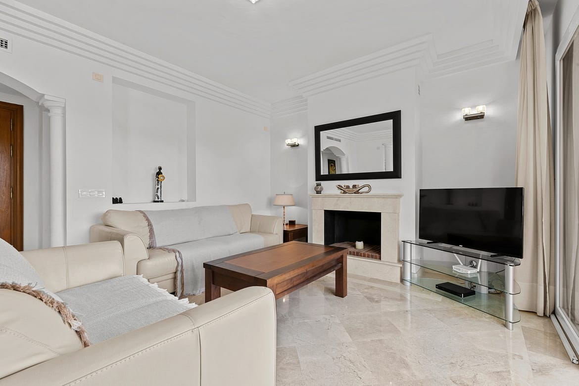 The terrace is mainly uncovered and offers several areas for outdoor dining, entertaining, and sunbathing, while enjoying open mountain views, including Los Reales, as well as some sea views.