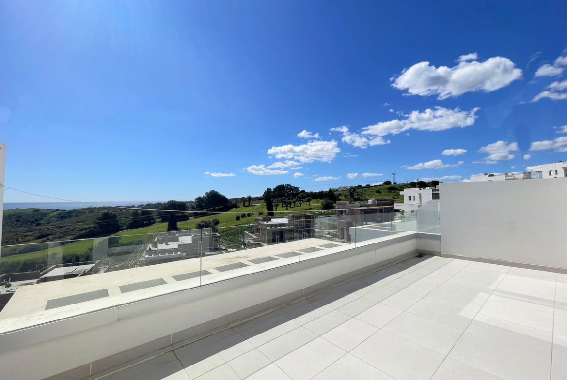 This spectacular duplex penthouse, located in an exclusive frontline golf development in Estepona, boasts a privileged south-facing orientation, ensuring abundant natural light throughout the day and breathtaking panoramic views of the sea and golf course from every room in the home.Just 5 minutes from the exclusive Alcazaba Lagoon and close to the new Estepona hospital, restaurants, supermarkets, and schools, this property offers a very convenient and well-connected location.On the main floor, the property features a modern, fully equipped kitchen that seamlessly integrates with the spacious living room, which opens directly onto a private terrace—perfect for enjoying the stunning surroundings. This level also includes two large bedrooms with built-in wardrobes, a full bathroom with double sinks and a walk-in shower, and a small laundry area.Upstairs, you’ll find the spacious master bedroom, complete with a walk-in wardrobe, en-suite bathroom with walk-in shower, and access to a private terrace with sea views—ideal for relaxing in complete privacy.