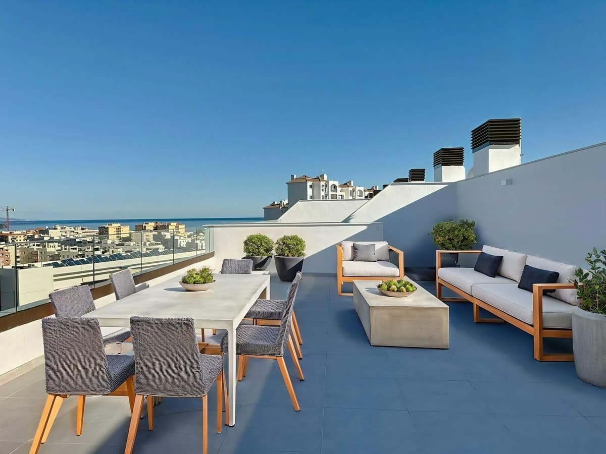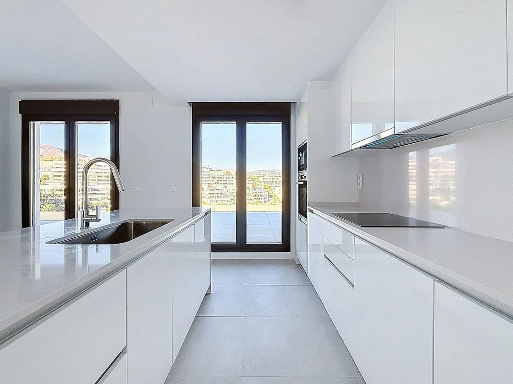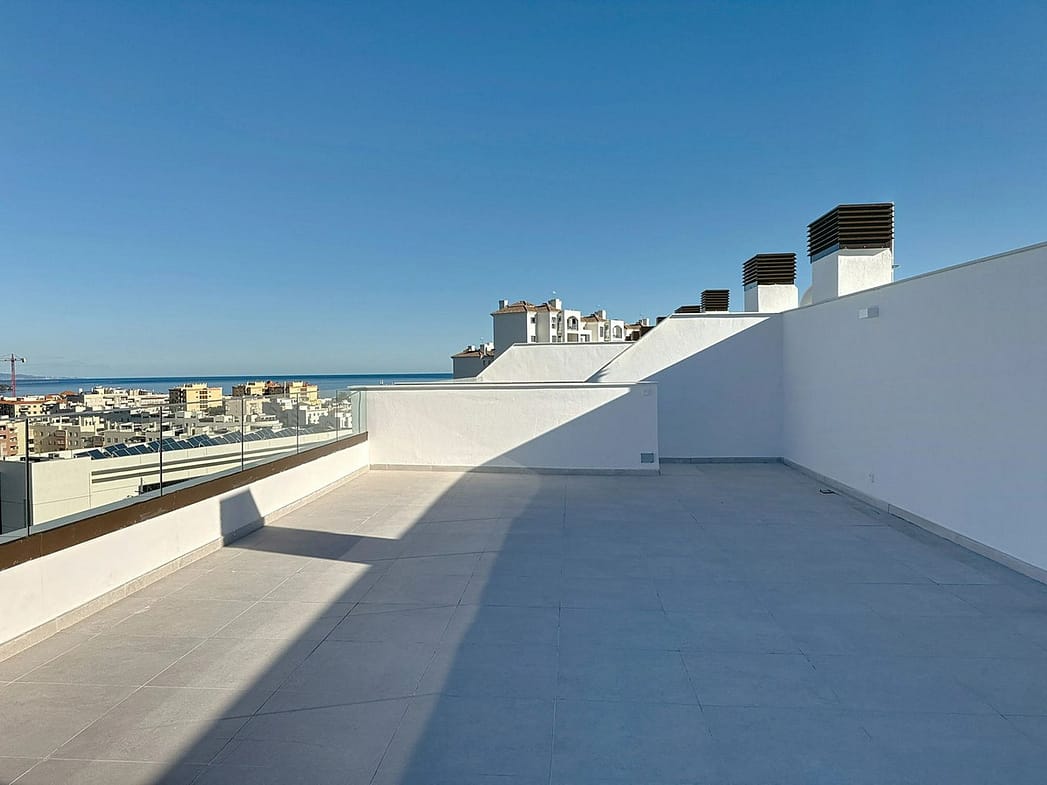 The apartment features 3 bedrooms and 2 bathrooms (one of them en suite), with modern, high-quality finishes. Its open-concept kitchen flows perfectly into the spacious living-dining room, creating a bright and functional space with direct access to the terrace. One of the highlights is the impressive 58 m² private solarium with panoramic views—perfect for relaxing, entertaining guests, or simply enjoying the wonderful Mediterranean climate.