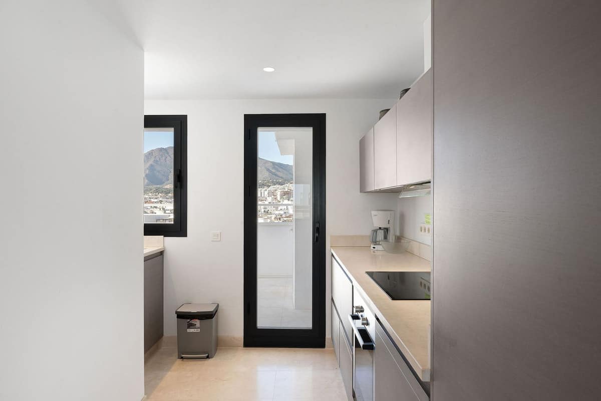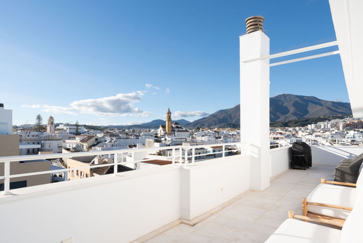 A very special penthouse situated 2nd line to the beach right in the centre of Estepona. The penthouse and terraces occupy the whole of the 6th floor on this building making it one of a kind and very private. The good size living and dining room have access straight out onto the southern part of the terrace with sea views but here comes the beauty, from here you can practically walk around the whole penthouse giving you amazing views in all directions especially over the old town towards the Sierra Bermeja Mountain range. The size of the terrace makes it possible to maximize your outdoor living and at the same time have a change of scenrio when you so desire. This is a truely unique property and has to be seen to be fully appreciated. Please note that the apartment is appr. 100m² constructed plus 187m² of terrace.