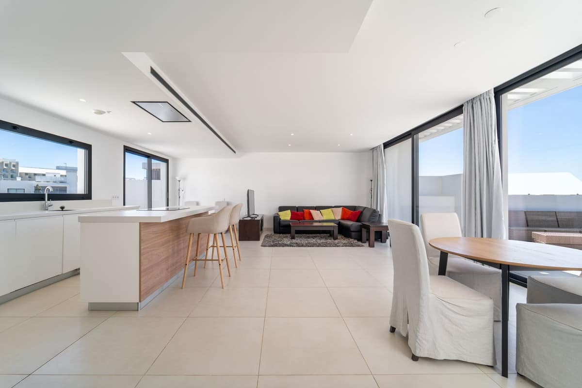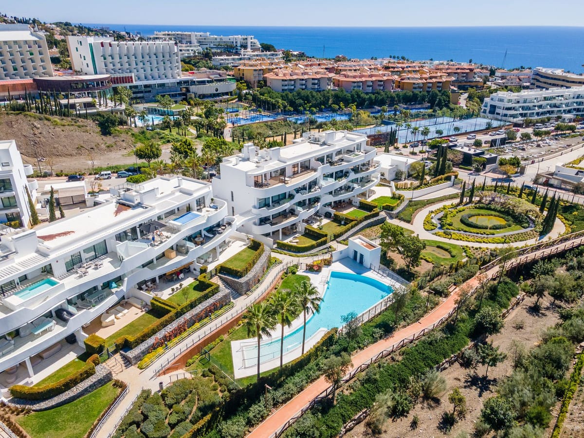 Luxury west facing penthouse, located in the exclusive urbanization of Higuerón West. Consists of entrance, hall way, spacious living-dining room with floor to ceiling glass sliding doors leading out to a large wrap around terrace of 158m2, with views of the mountains, gardens and partial sea views. Open plan kitchen fully furnished and equipped with electrical appliances from Bosch and laundry area with washing machine/dryer. Main bedroom with ensuite bathroom and walk-in closet, 2 extra bedrooms with built-in wardrobes and guest bathroom. There is also a backside terrace of 15m2 with access from the living room. Air conditioning hot and cold by Airzone, video intercom, domotic system, pre-installation alarm system, floor heating in both bathrooms. Includes two parking spaces and one storage room.